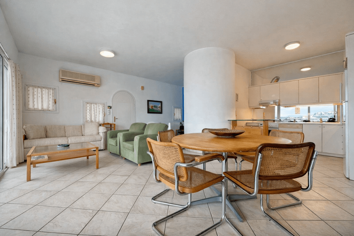 בקומה הראשונה חלל מגורים מרווח ומואר במיוחד הכולל סלון, פינת אוכל ומטבח בחלל פתוח, עם יציאה ישירה למרפסת גדולה הפונה מזרחה. הנוף הפנורמי לים וזריחות השמש יוצרים אווירה מושלמת לאירוח ולרוגע.
