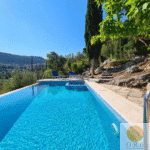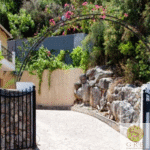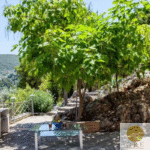 קירות אבן טבעית, עצי זית וברוש, שיחים וצמחייה ים־תיכונית ליצירת פרטיות מלאה