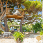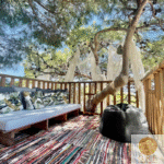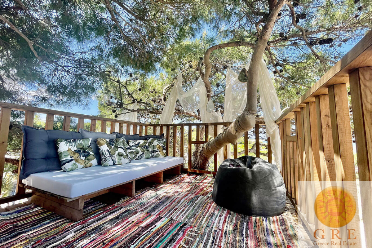 בית עץ ייחודי בקדמת המגרש עם נוף פנורמי לים