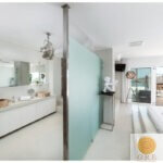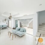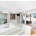 בפנים הבית – עיצוב מודרני וחמים, מטבח פתוח מאובזר במלואו, סלון ופינת אוכל עם נוף ים מרהיב, וכן אזורי מגורים נוספים עם מטבחונים, חדרי שינה נוספים ומרפסות הצופות לנוף.