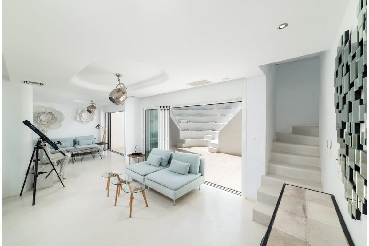 בפנים הבית – עיצוב מודרני וחמים, מטבח פתוח מאובזר במלואו, סלון ופינת אוכל עם נוף ים מרהיב, וכן אזורי מגורים נוספים עם מטבחונים, חדרי שינה נוספים ומרפסות הצופות לנוף.
