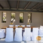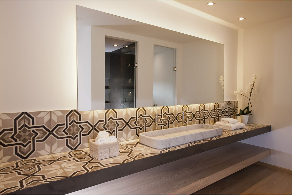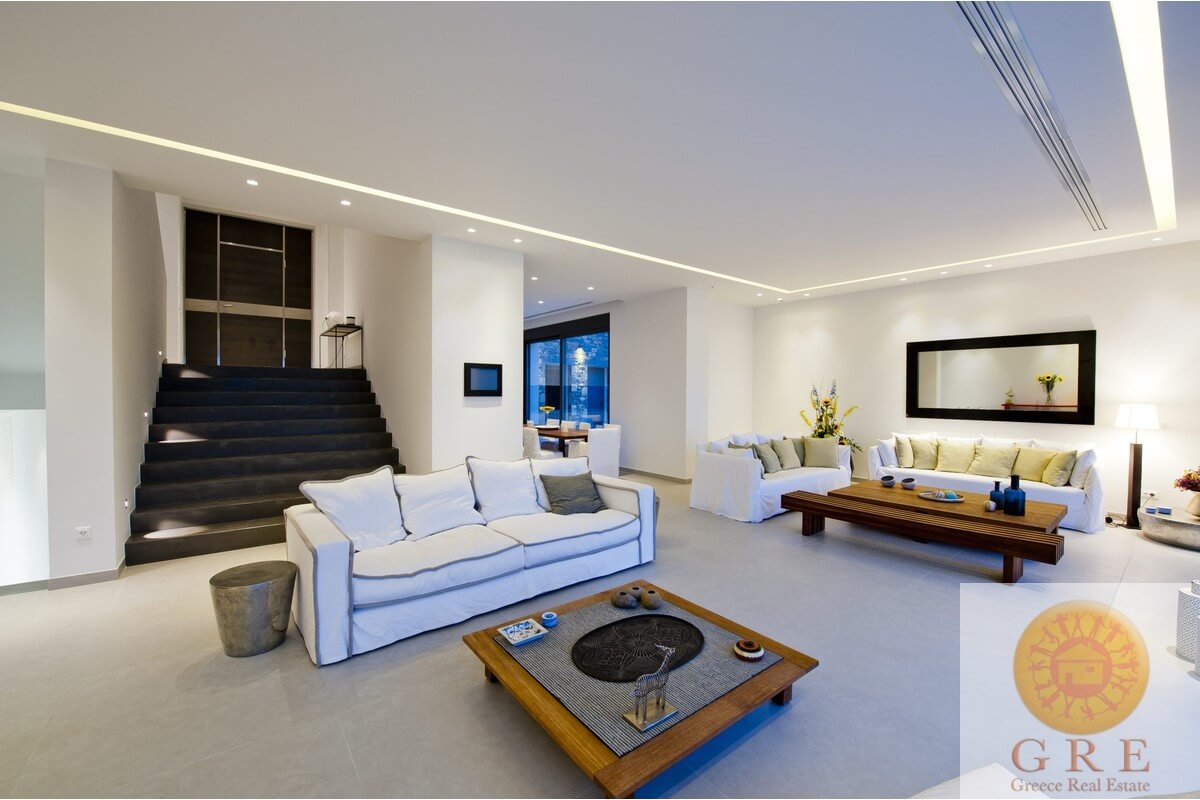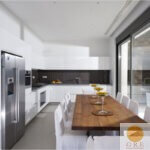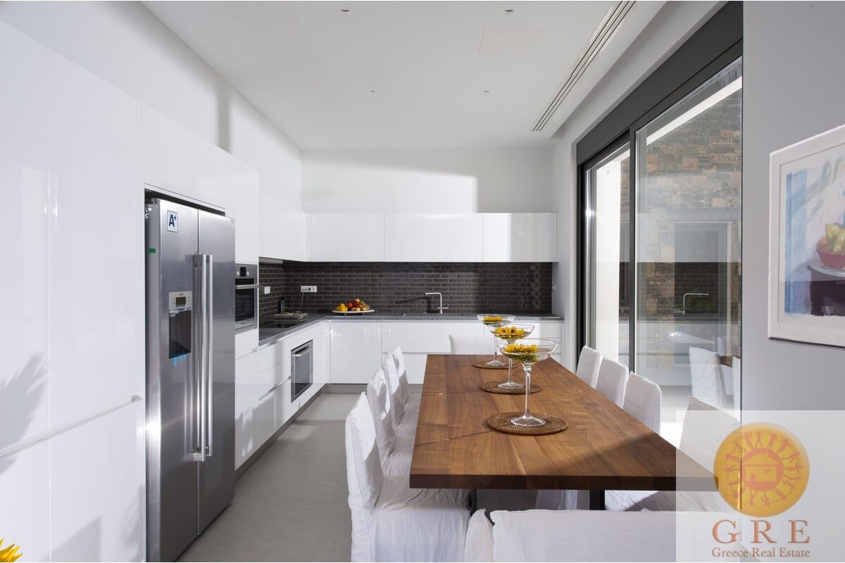 בכניסה לוילה מתגלה סלון מרווח ומואר הזורם לפינת אוכל ולמטבח מודרני מאובזר במלואו.