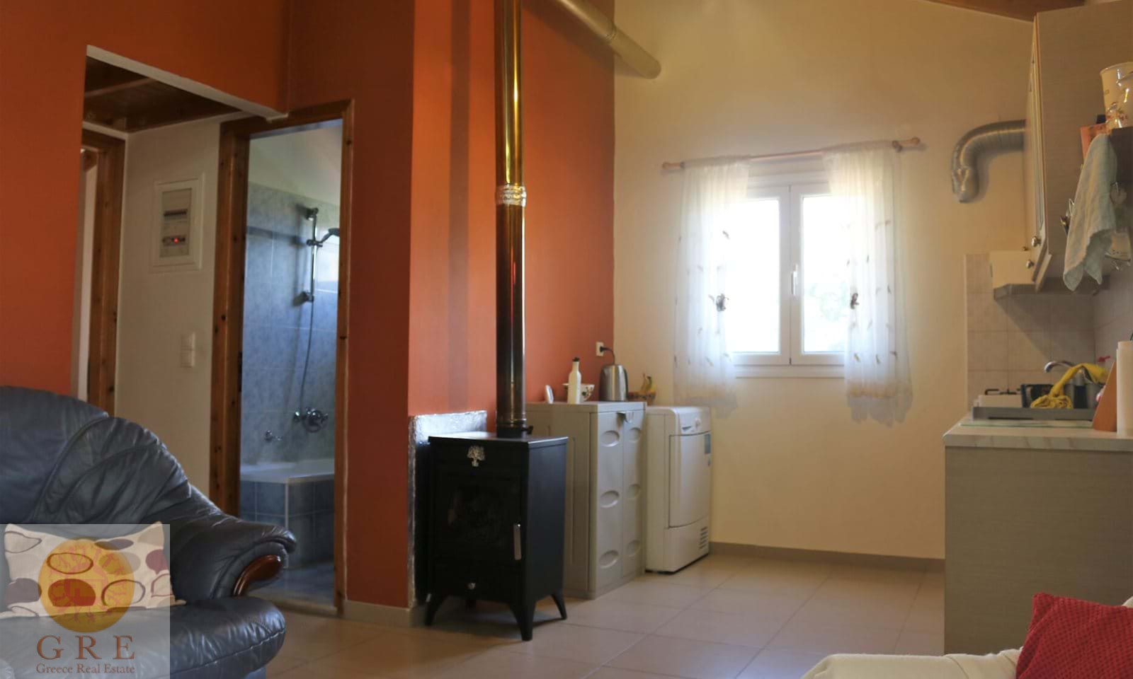הבית בנוי קומה אחת עם סלון פתוח, מטבח עם אח עצים, שני חדרי שינה זוגיים וחדר אמבטיה משפחתי.