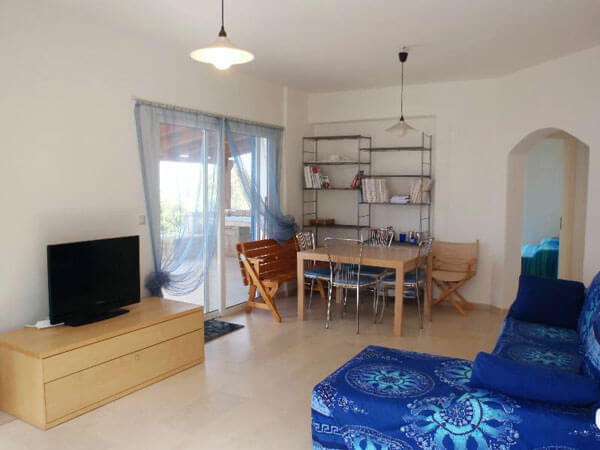 לבית סלון גדול עם כמין פתוח, מטבח, 2 חדרי שינה, חדר רחצה ומרפסת גדולה עם פרגולה מעץ,