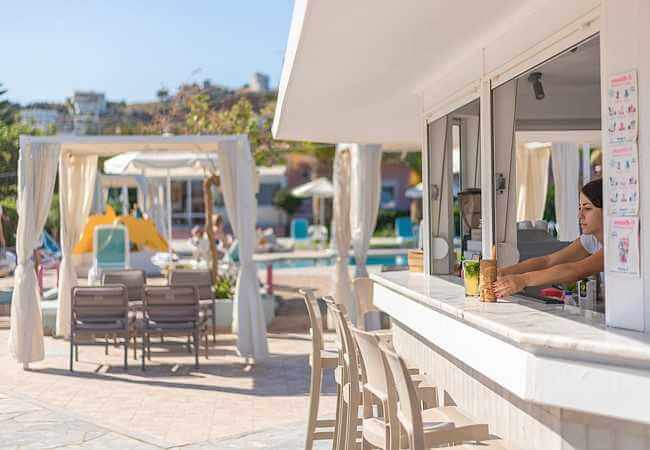 יש בר חוף עם 18 שמשיות עם 36 מיטות שיזוף.
