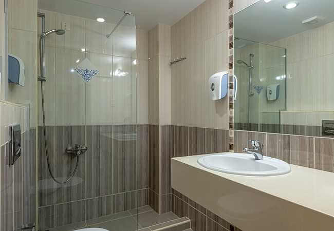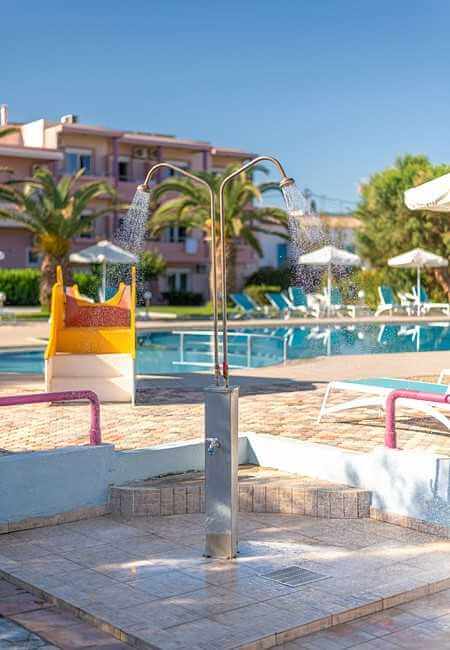 באזור הבריכה מקלחות וחדרי רחצה משותפים לנוחות הלקוחות.