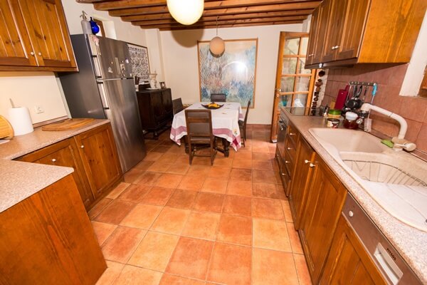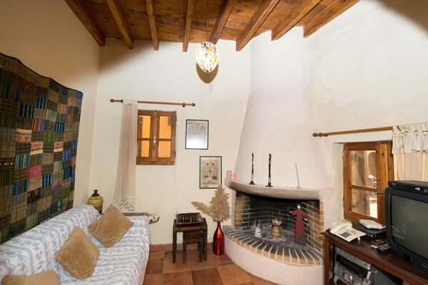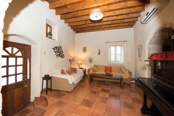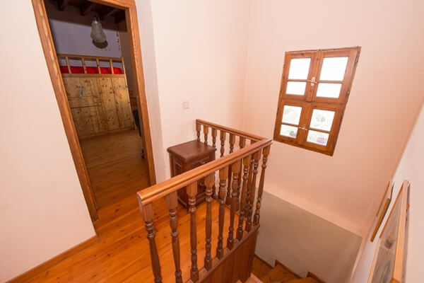 מדרגות עץ מובילות ל – 3 חדרי שינה מעוצבים עם אח פתוח, בקומת הקרקע נמצא הסלון, חדר ישיבה קטן עם אח פתוחה, שירותי האורחים ומטבח מאובזר ומרווח.