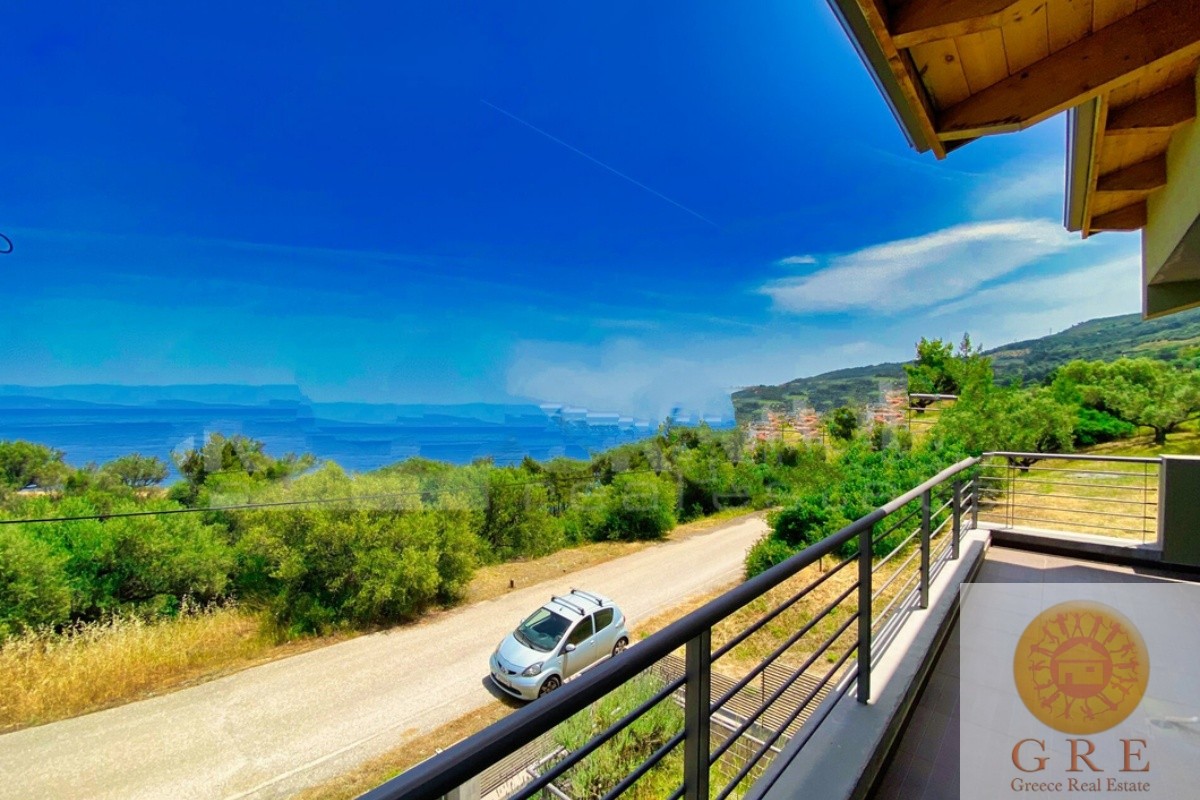 • מרפסת רחבה עם נוף פנורמי פתוח למפרץ קורינתוס