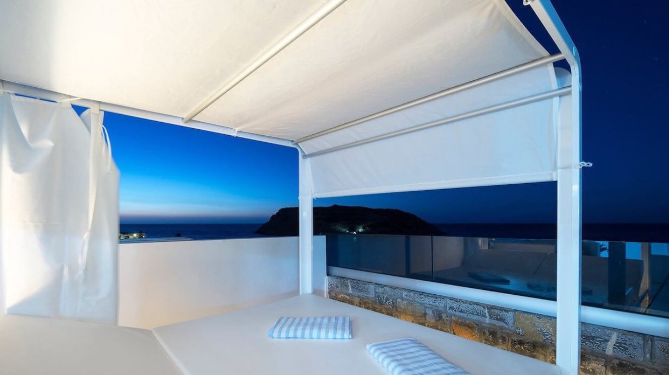 בעלייה בגרם מדרגות פנימי מגיעים לקומה השלישית שבה אזור סלון עם אח ומטבח עם מרפסת ונוף לים.