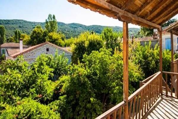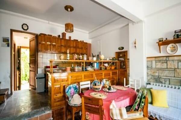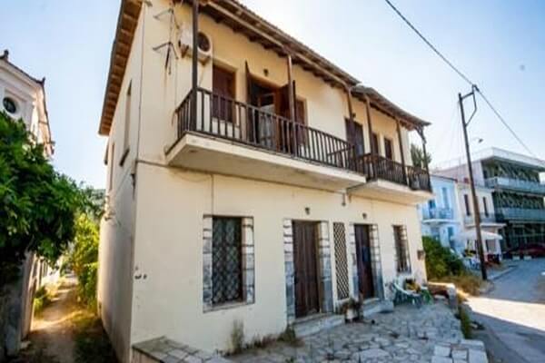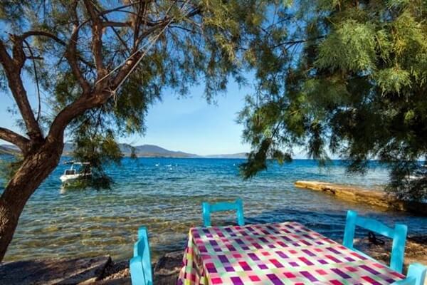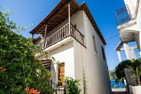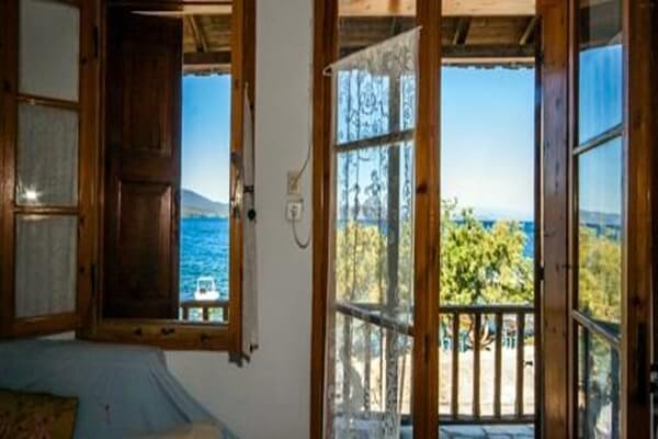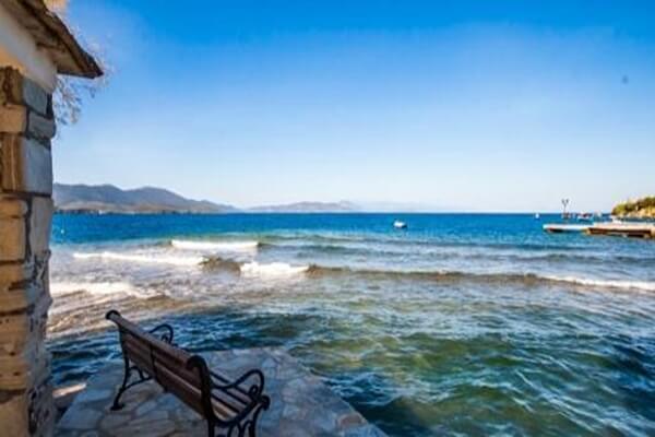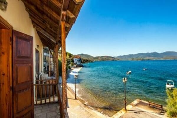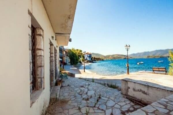 2 מזונטים צמודים בעיירת חוף בקו הראשון למים בחצי האי פליון, יוון.