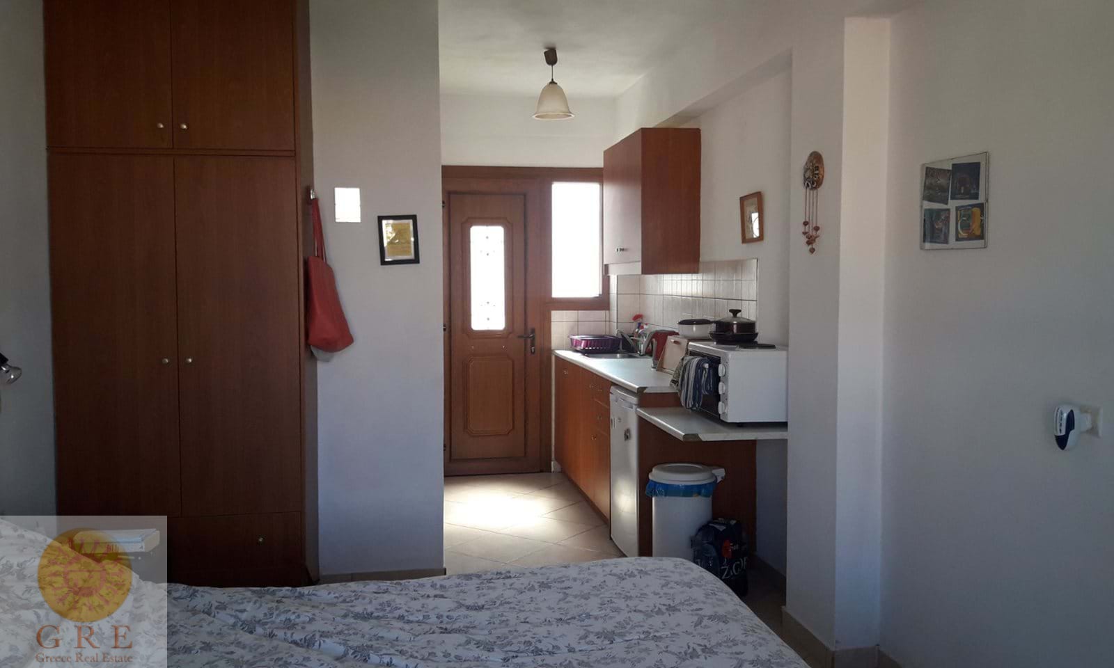 חדר שינה גדול. מטבח קטן ומאובזר, חדר מקלחת מודרני ומרפסת יפה מובילה אל מחוץ לחדר השינה אידיאלית לישיבה לזוג.