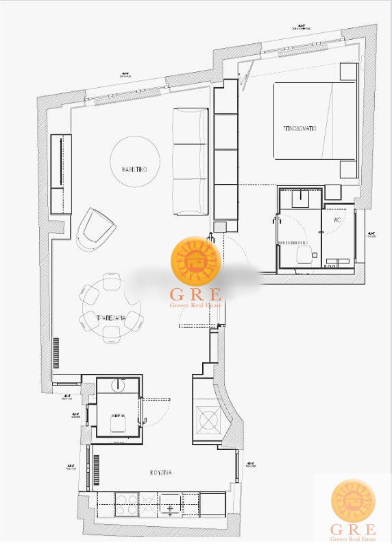 דירה ייחודית, משופצת מלאה של 66 מ"ר, קומה 4, בסטנדרטים גבוהים, ליד תחנת המטרו "Evangelismos".