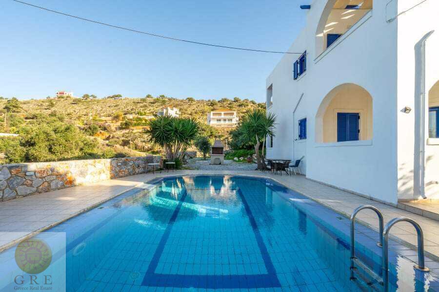 דירה עם נוף לים, המשתרעת על הקומה הראשונה בבניין בן שתי קומות, עם בריכה משותפת.