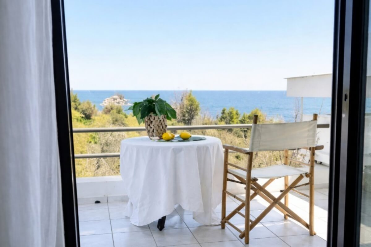דירת סטודיו מוארת בגודל 32 מ"ר עם נוף פתוח לים.