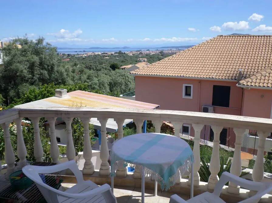 בקומה העליונה דירה מודרנית, משופצת ומעוצבת ובה סלון, מטבח, 2 חדרי שינה, חדר מקלחת ושירותים ומרפסת.