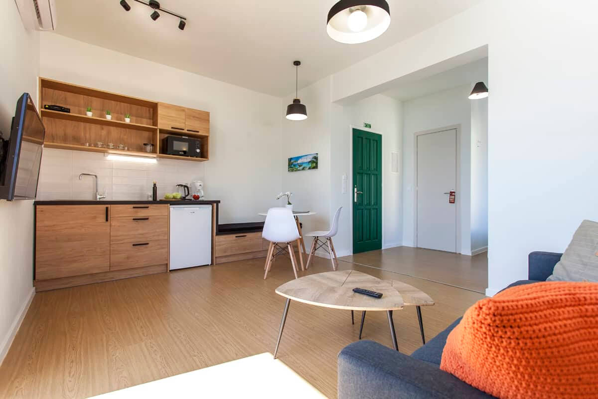 כשנכנסים לדירה, נמצאים בחלל פתוח מרווח עם מטבח מאובזר במלואו, פינת אוכל, אזור ישיבה עם ספת מיטה אידיאלית לאירוח אורח נוסף, וחדר שינה פתוח עם מיטה זוגית. יש גם חדר רחצה משפחתי.