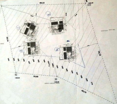 התכנון הינו של 50 מ"ר בקומת הקרקע ועוד 30 מ"ר בקומה השניה. סה"כ 320 מ"ר בנוי לארבעת הבתים.