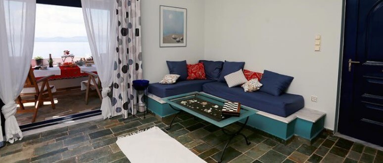 הכניסה הראשית מובילה לסלון נעים עם פינת ישיבה, החלל נפתח למרפסת גדולה המציעה נוף פנורמי לים.