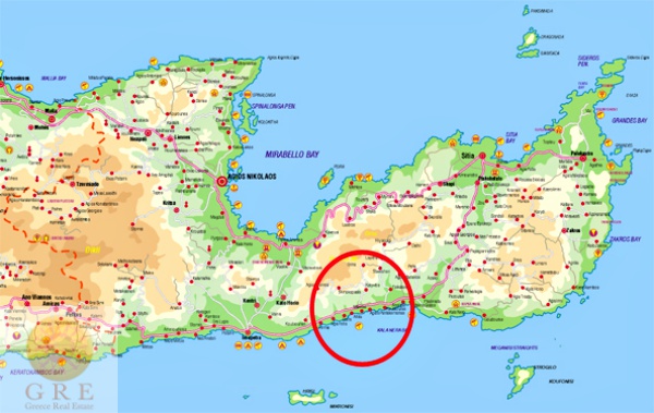 החוף נמצא במרחק של כ -600 מטרים וכפר הנופש הקטן של מקריגיאלוס (Makrigialos), במרחק 5 דקות נסיעה ברכב. יש מבחר טוב של ברים, מסעדות וטברנות, ומפעלים רבים פונים לחוף.