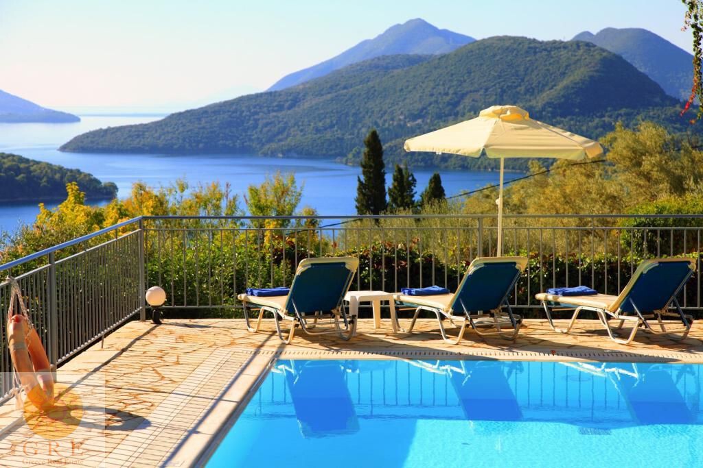 חלונות צרפתיים יוצאים אל מרפסת הבריכה עם נוף מקסים לים.