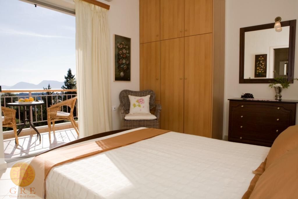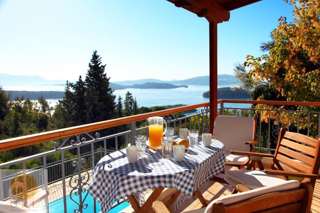 חלונות צרפתיים המובילים אל מרפסת, בה אפשר לעשות ארוחות בוקר/צהריים/ערב, עם נוף מרהיב לים.
