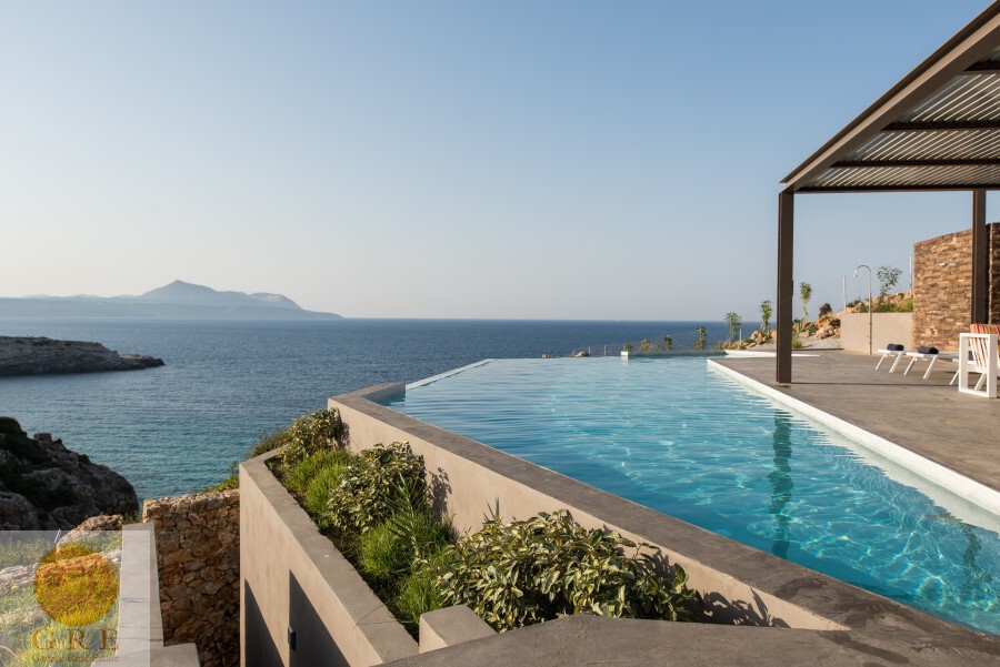 בחוץ, בריכת אינסוף מחוממת בגודל של 60 מ"ר, משקיפה על מי הים הצלולים והכחולים מתחת לטרסות מרובות מפלסים עם נוף מדהים. בסמוך יש פינת אוכל גדולה נפרדת עם מנגל בגודל מלא.