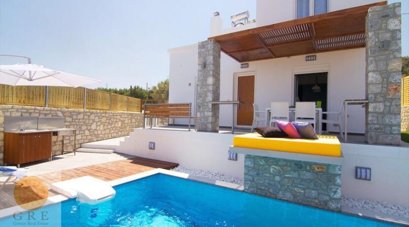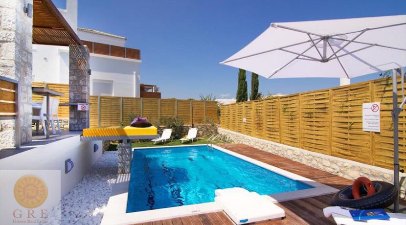 לווילה מתווה פינתי עם נוף לים, מכיל גם רהיטים, דלתות ביטחון, דוד שמש, אח, מזגן, בריכת שחייה, חניה, גינה, מחסן.