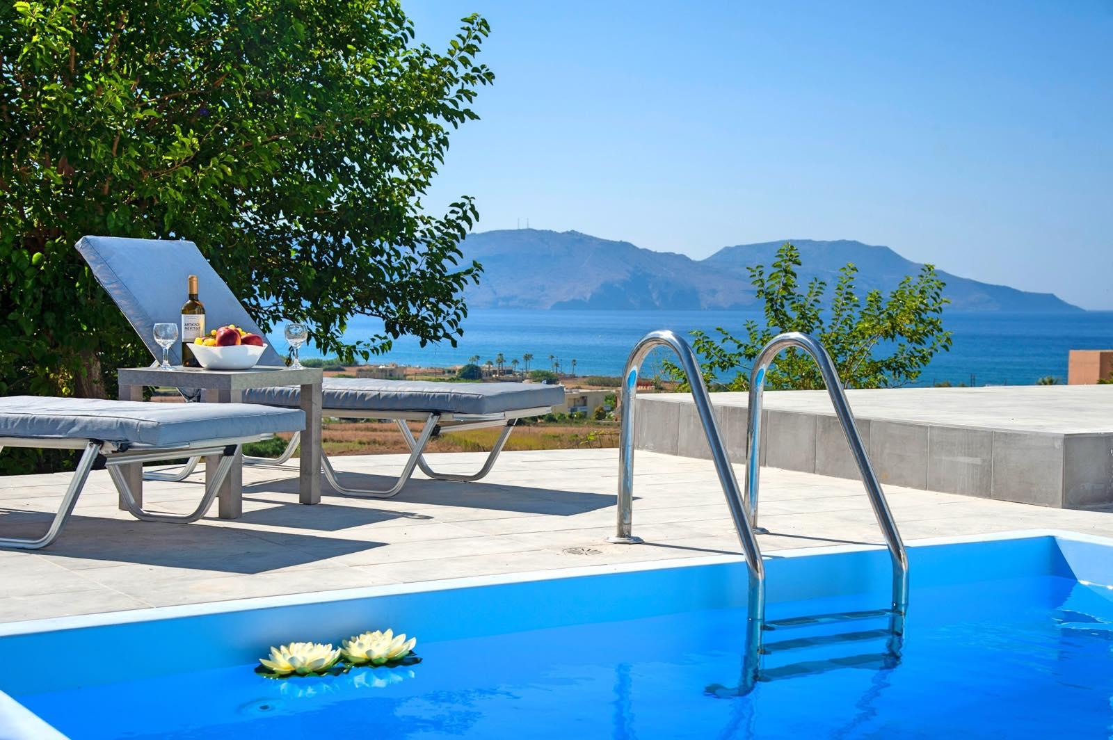 3 חדרי שינה ובריכה חיצונית מחוממת עם נוף מרהיב לים.
