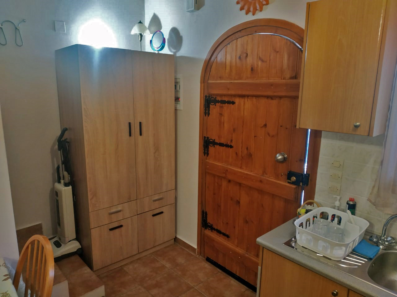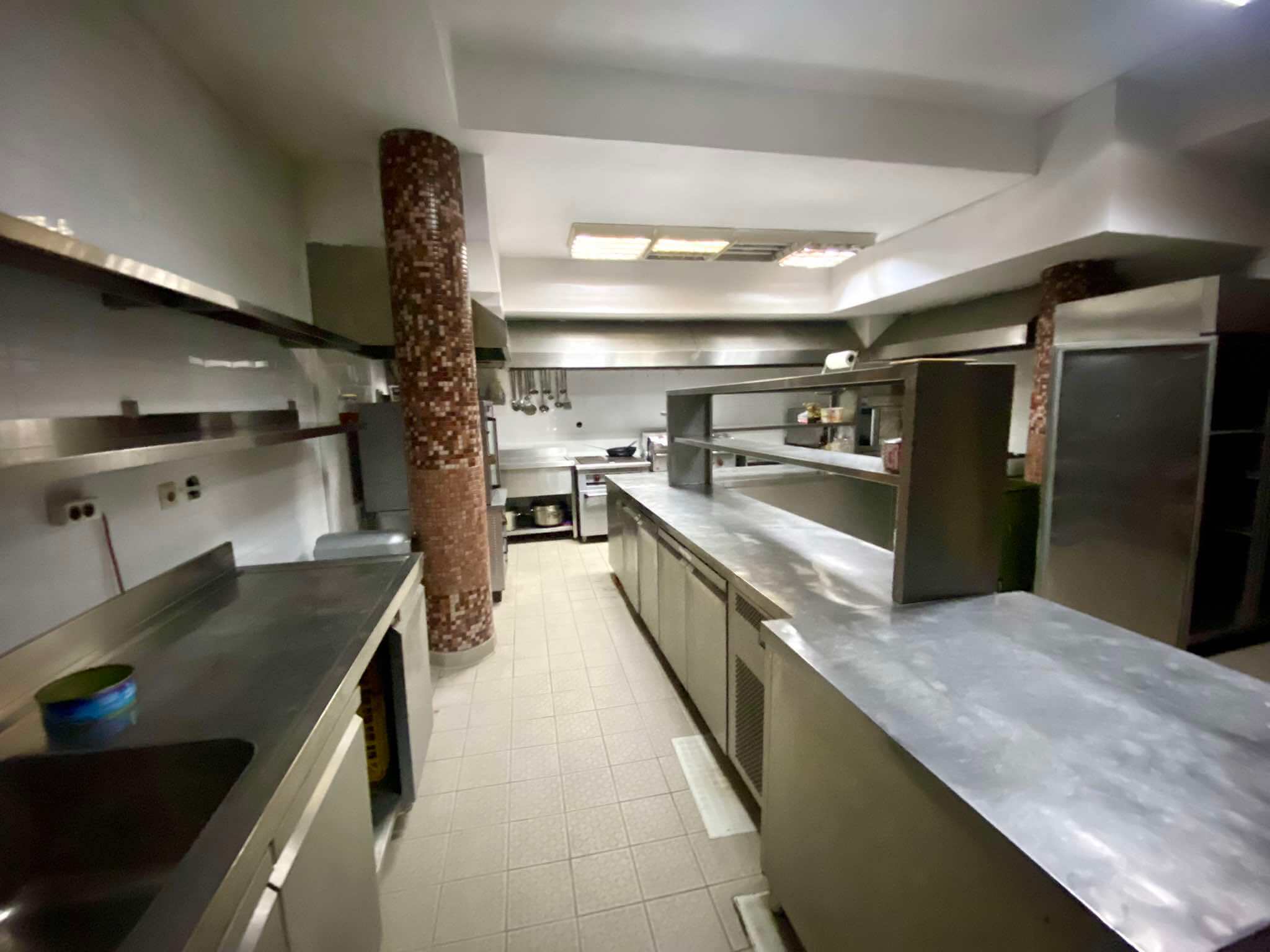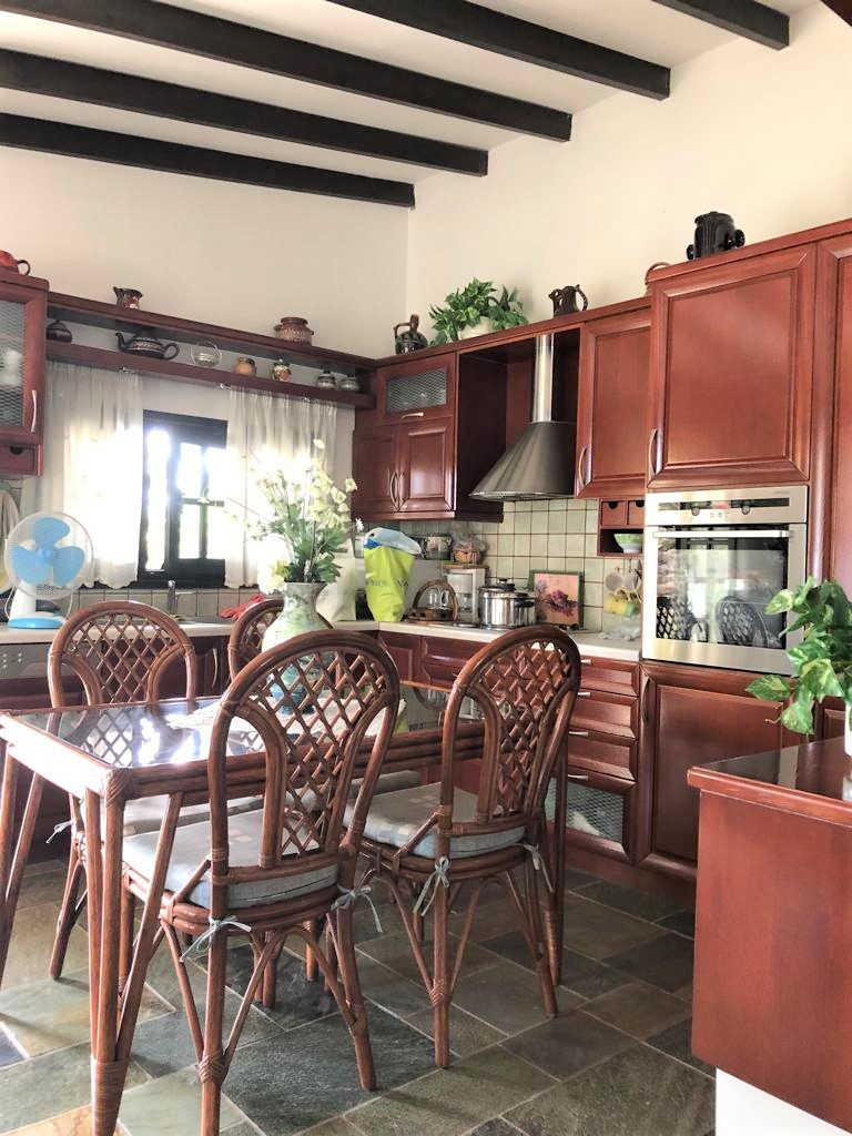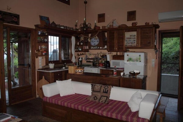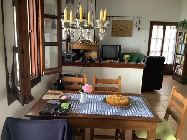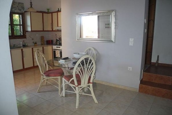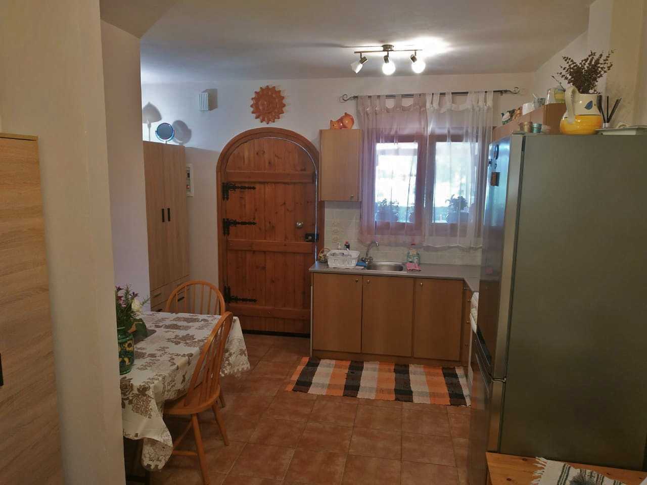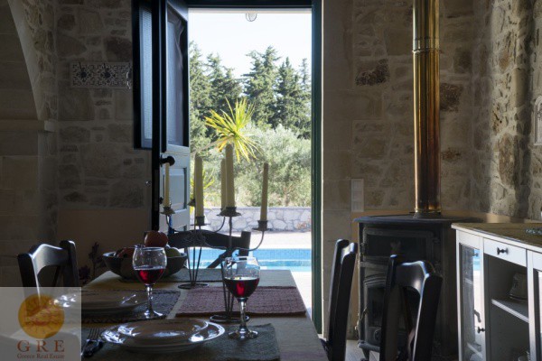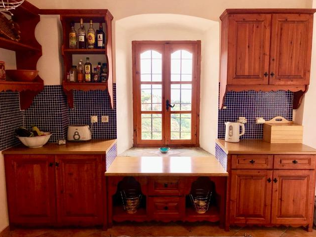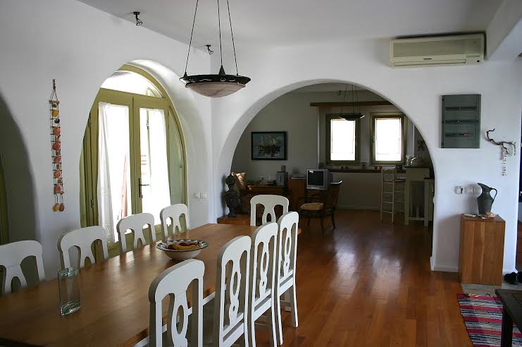 דרך קשת גדולה בנויה מאבן אנו מגיעים לחדר האוכל ולמטבח המאובזר במלואו, שיש לו גישה למרפסת הגדולה.