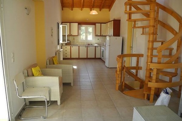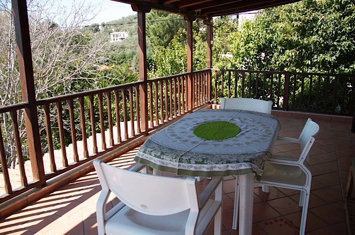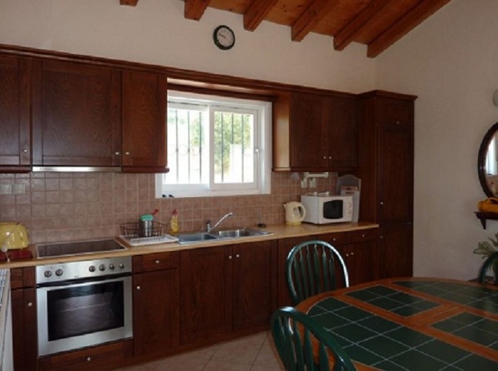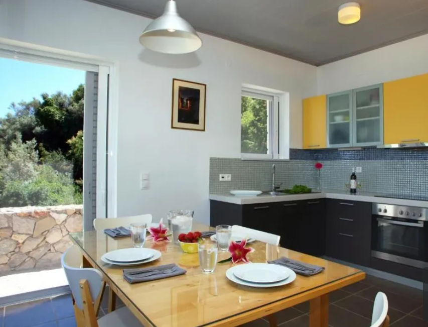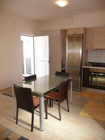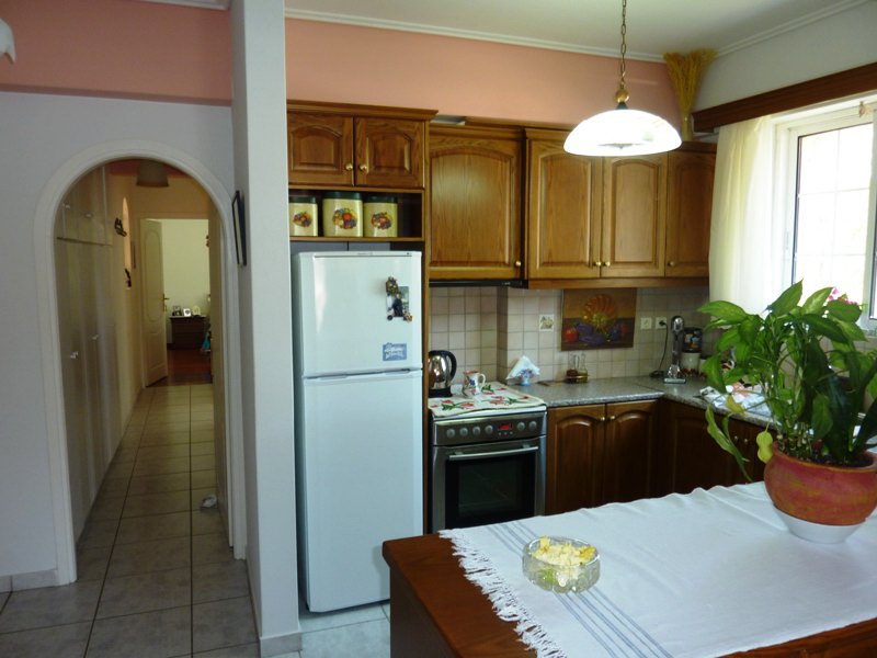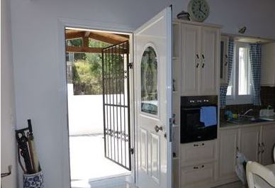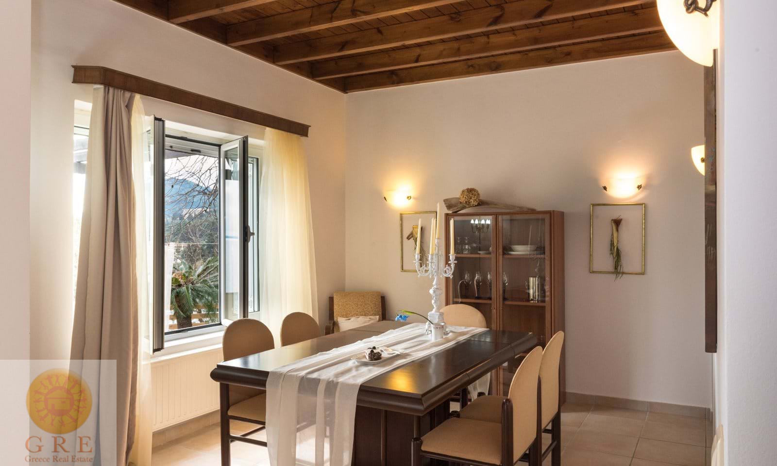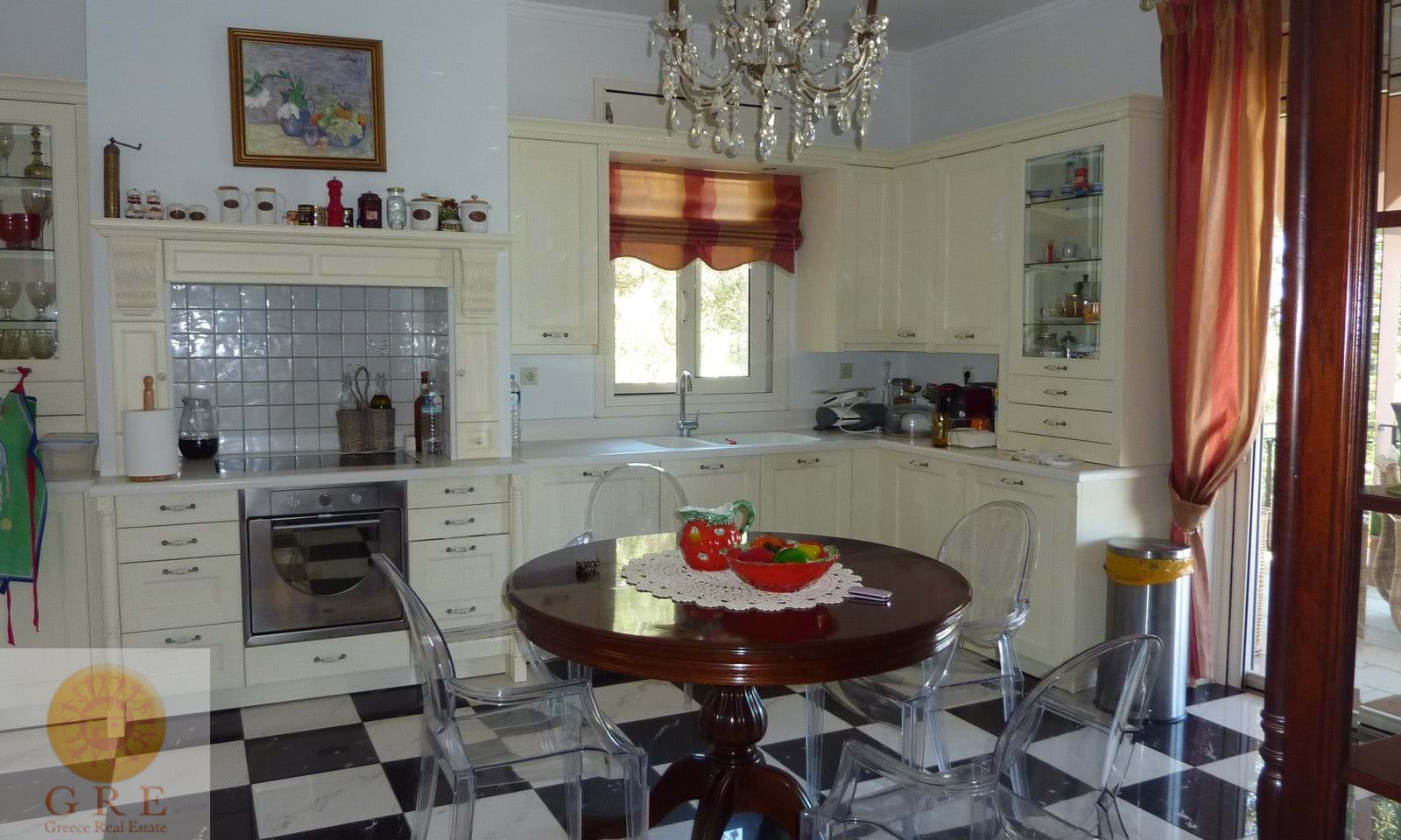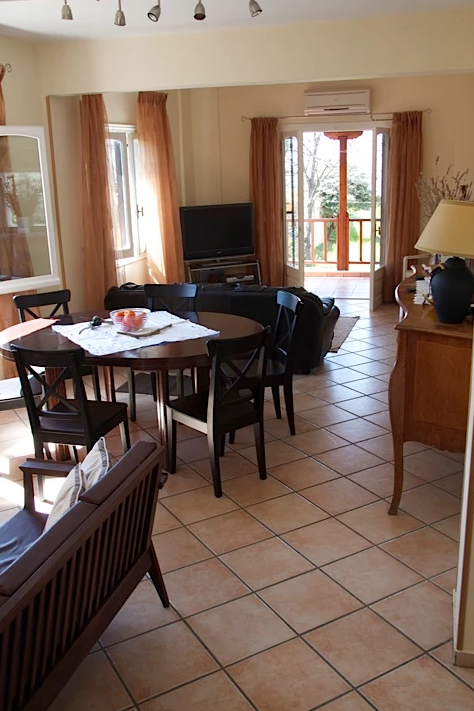 דרך קשת גדולה בנויה מאבן אנו מגיעים לחדר האוכל ולמטבח המאובזר במלואו, שיש לו גישה למרפסת הגדולה.