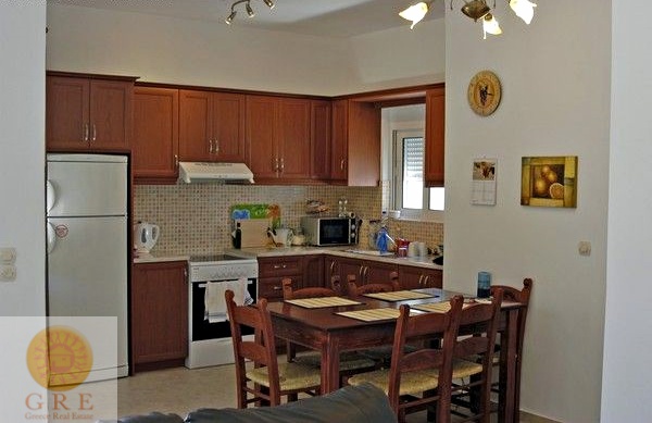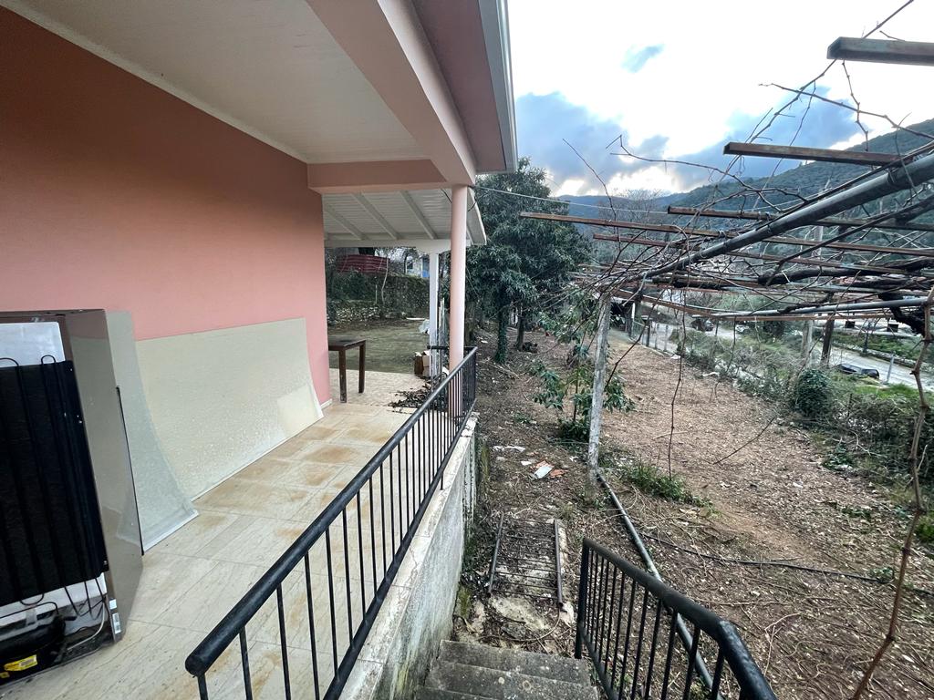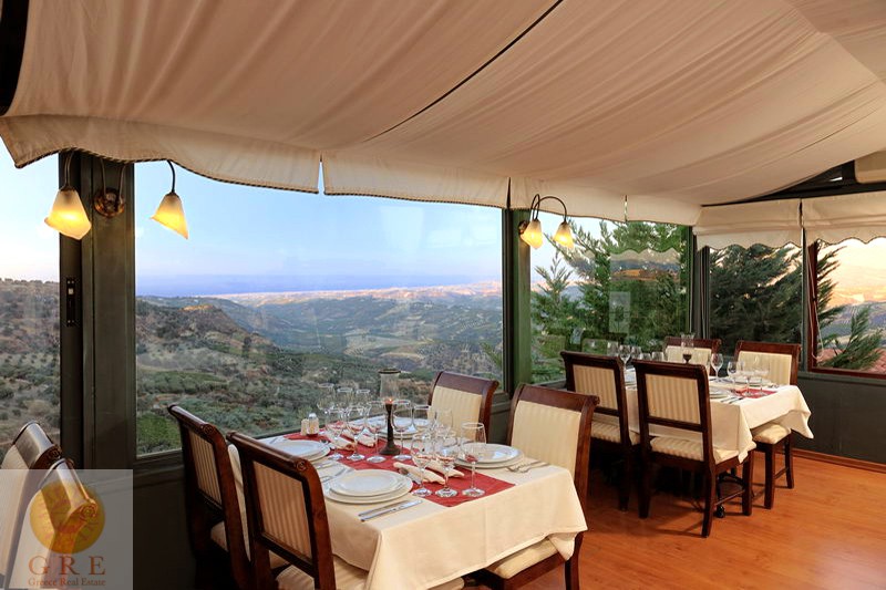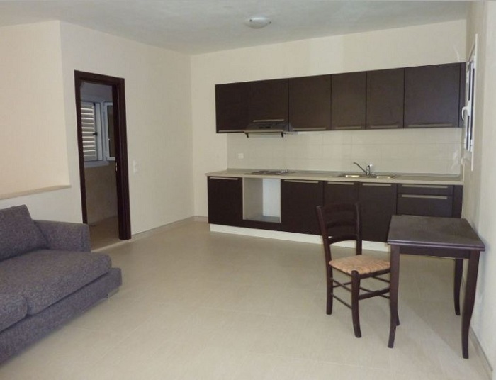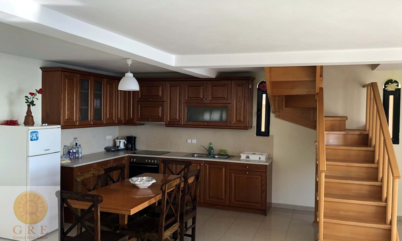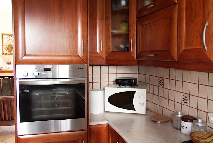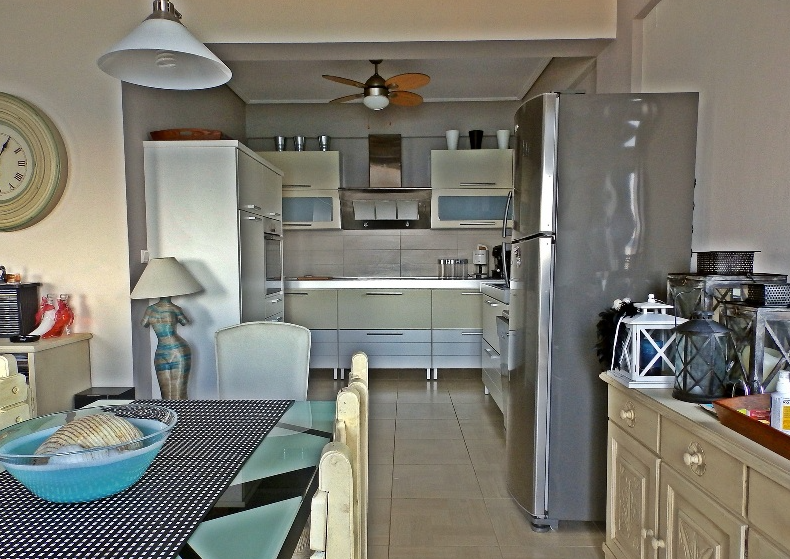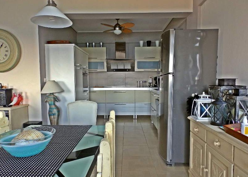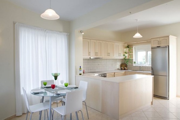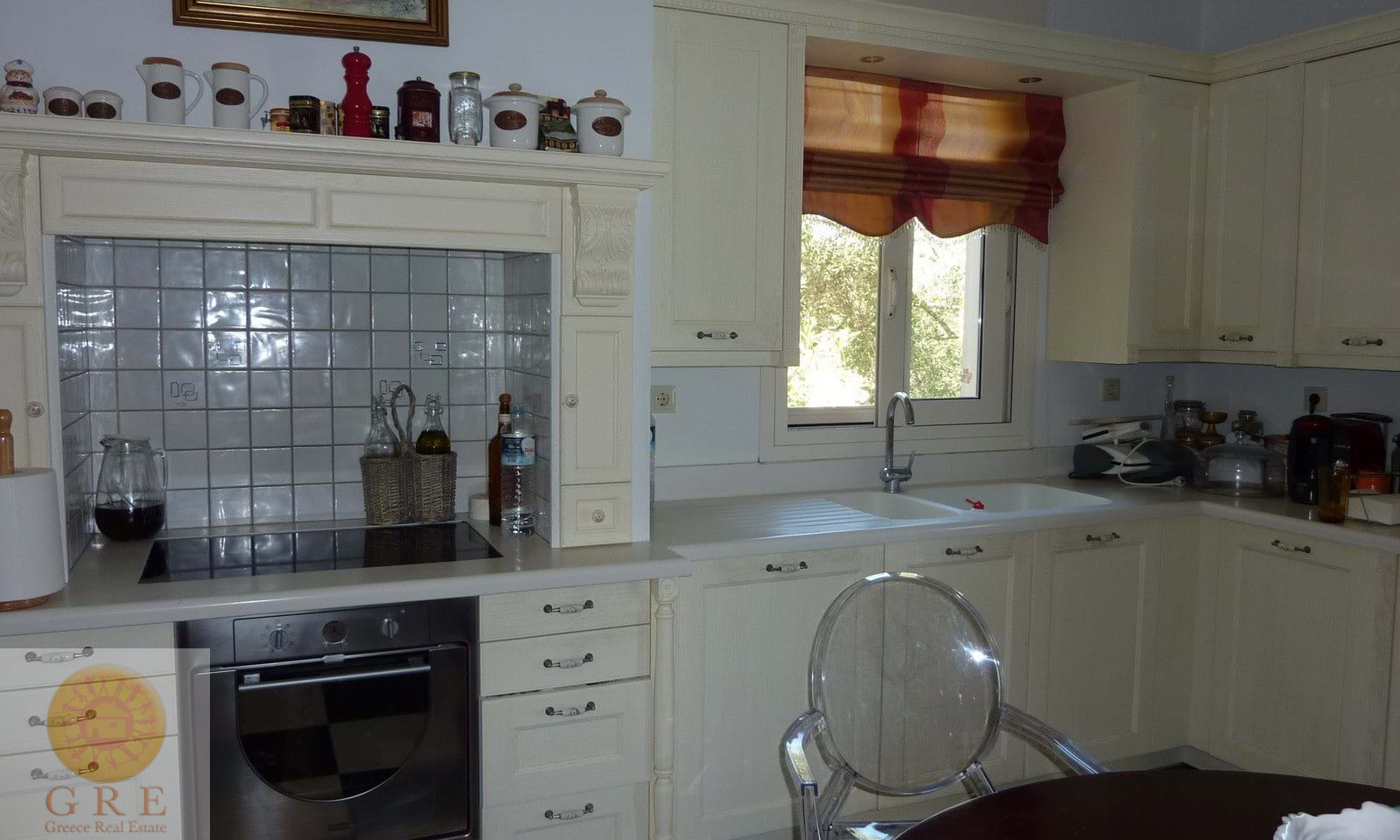 דרך קשת גדולה בנויה מאבן אנו מגיעים לחדר האוכל ולמטבח המאובזר במלואו, שיש לו גישה למרפסת הגדולה.