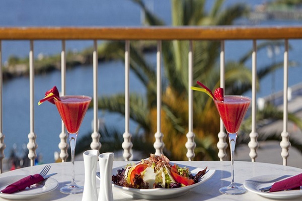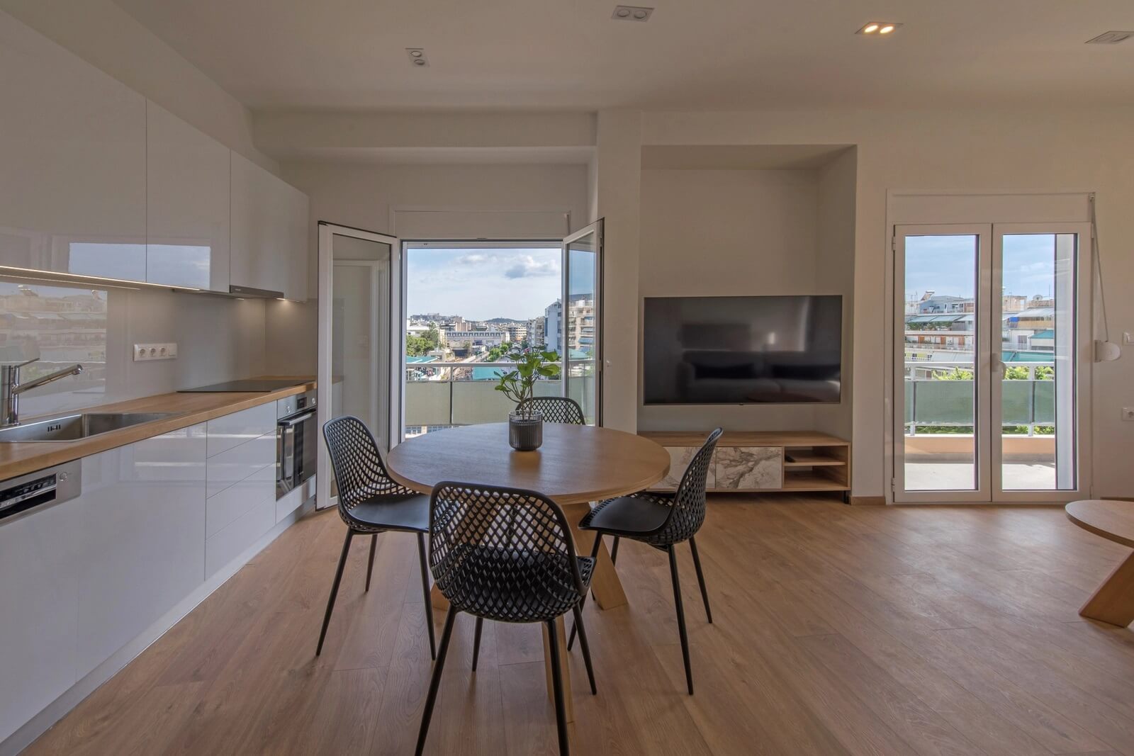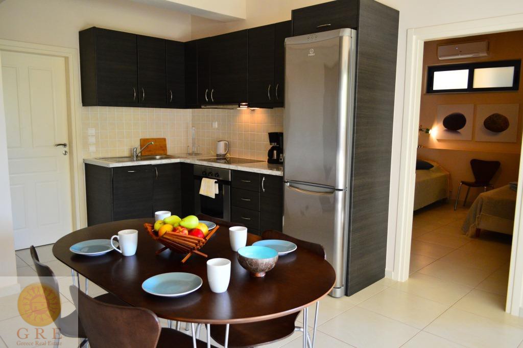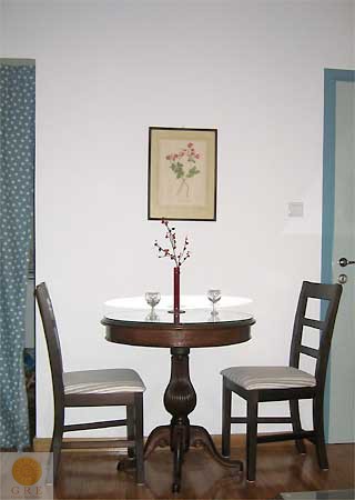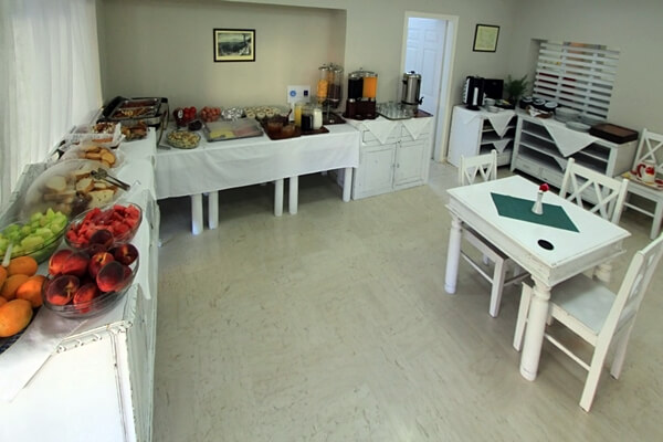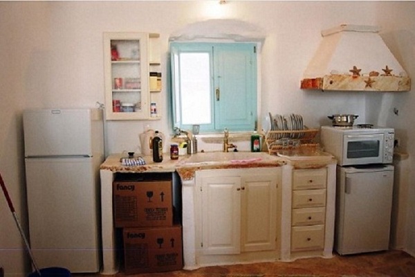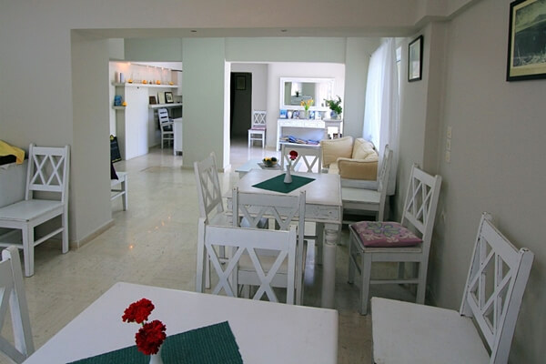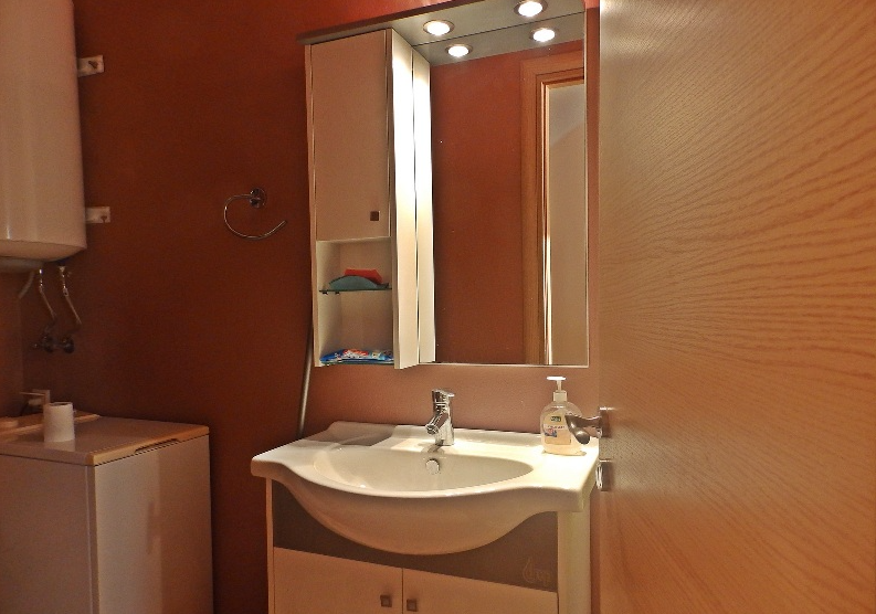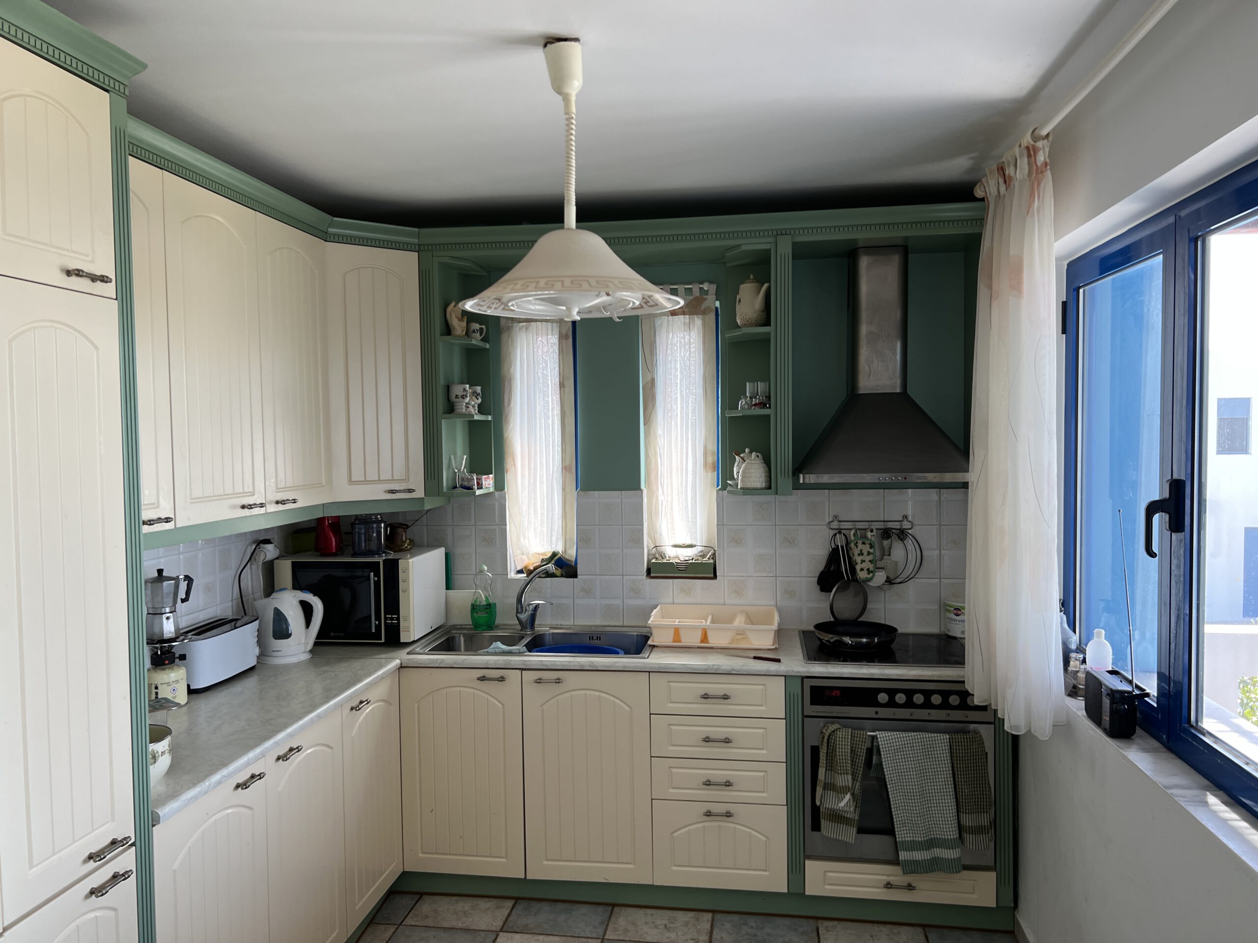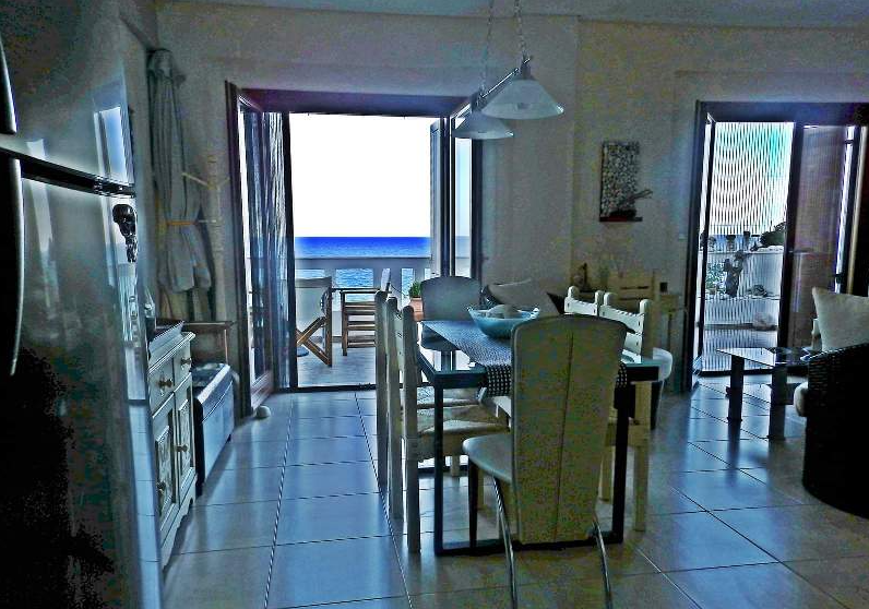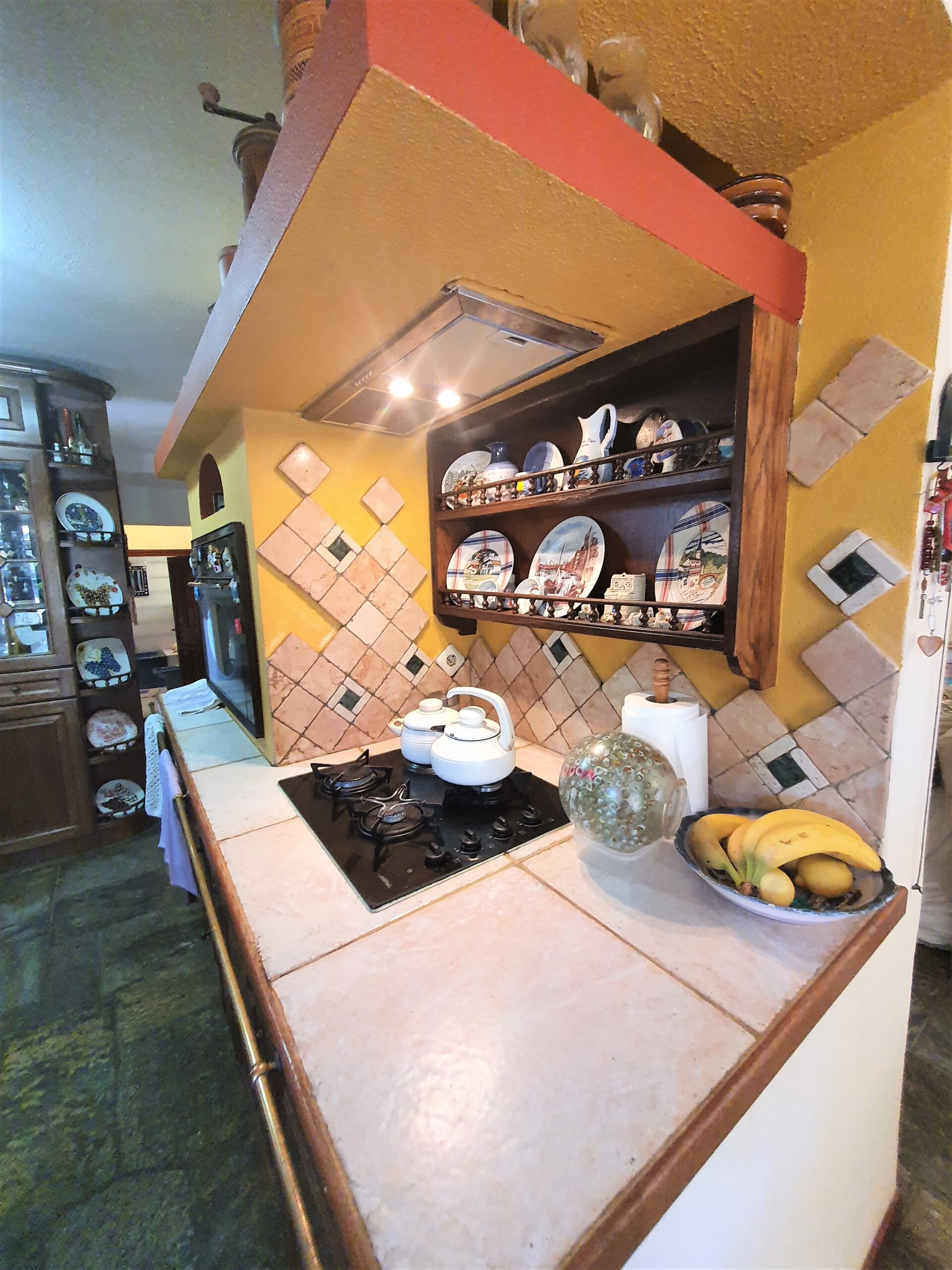דרך קשת גדולה בנויה מאבן אנו מגיעים לחדר האוכל ולמטבח המאובזר במלואו, שיש לו גישה למרפסת הגדולה.