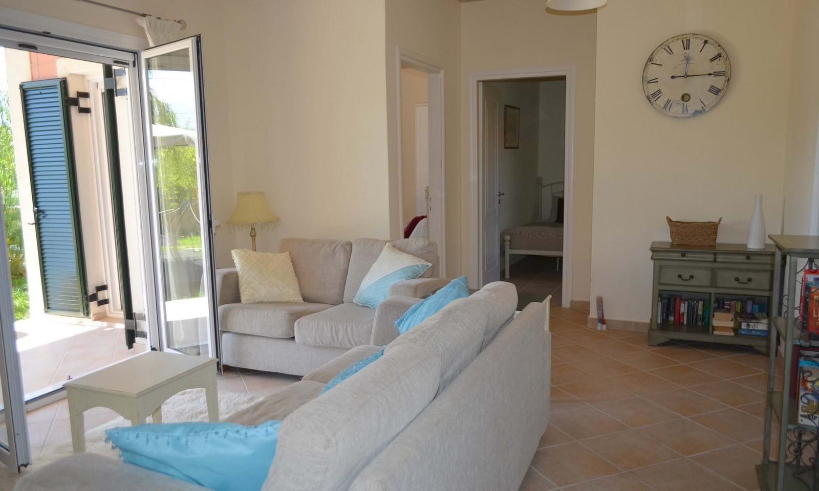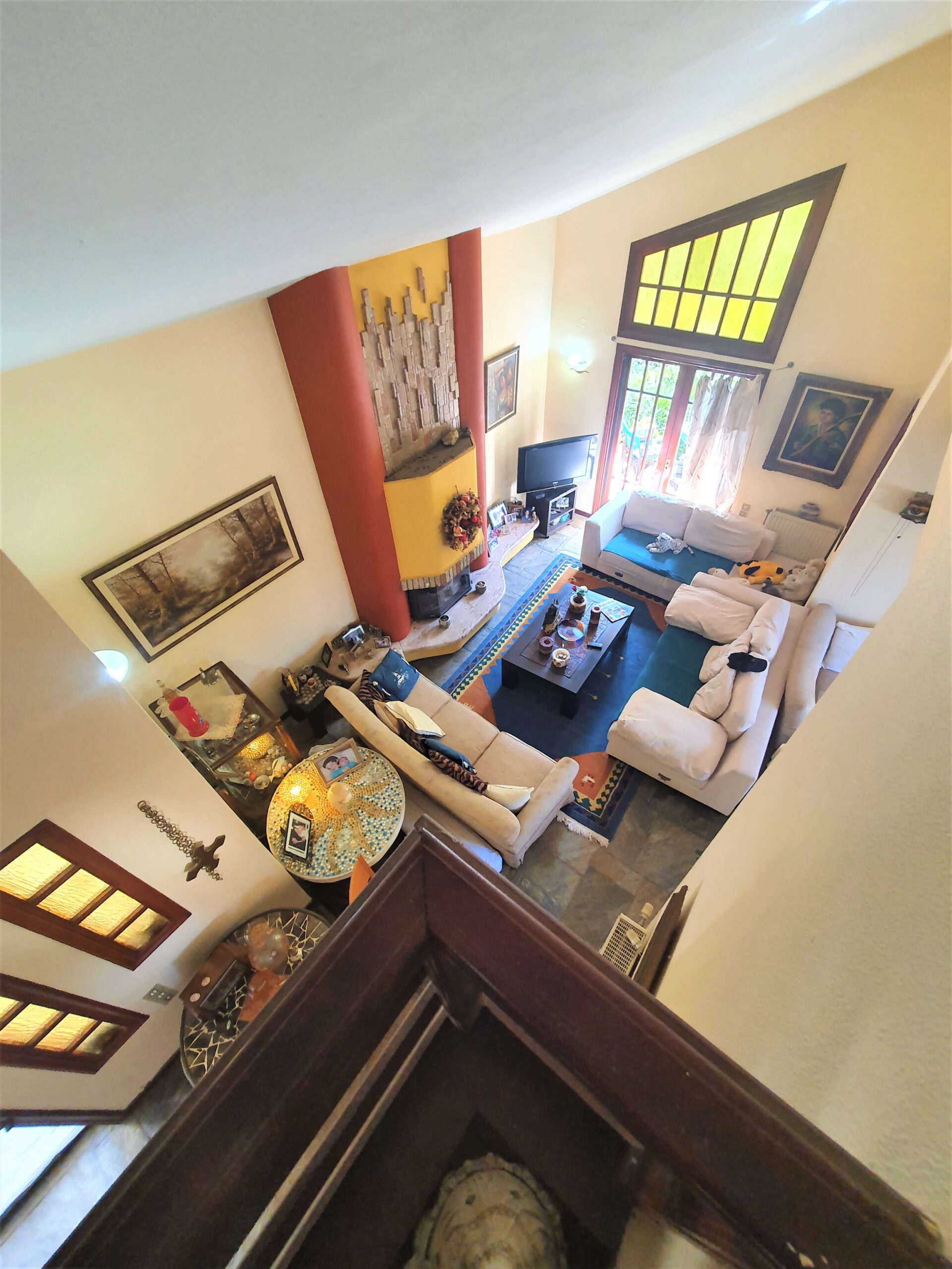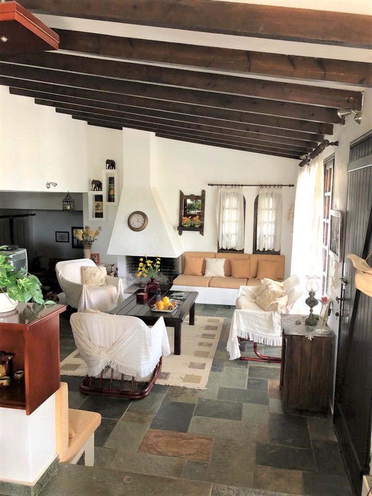 בקומת הקרקע, אפשר למצוא את הסלון הגדול עם אח וחלון גדול עם נוף לגן המדשאה ולבריכת השחייה והסביבה הכפרית.