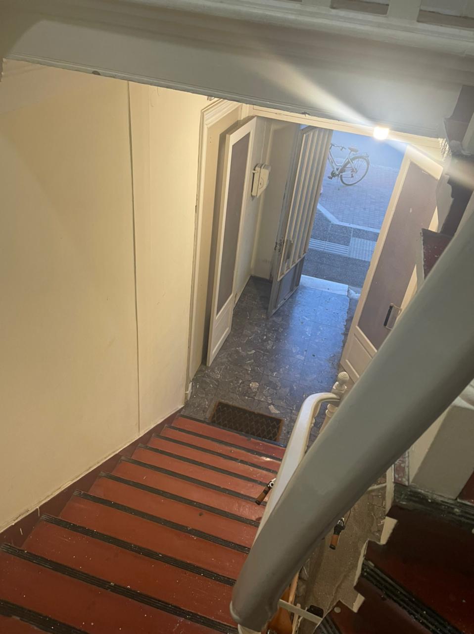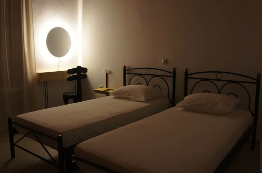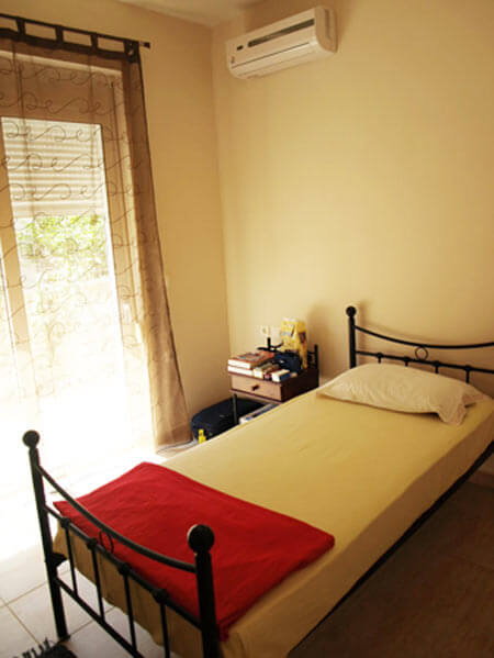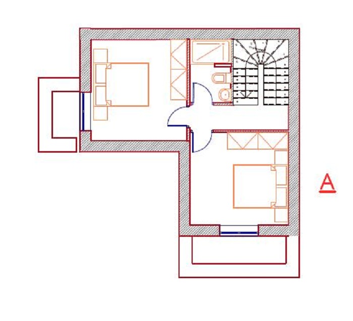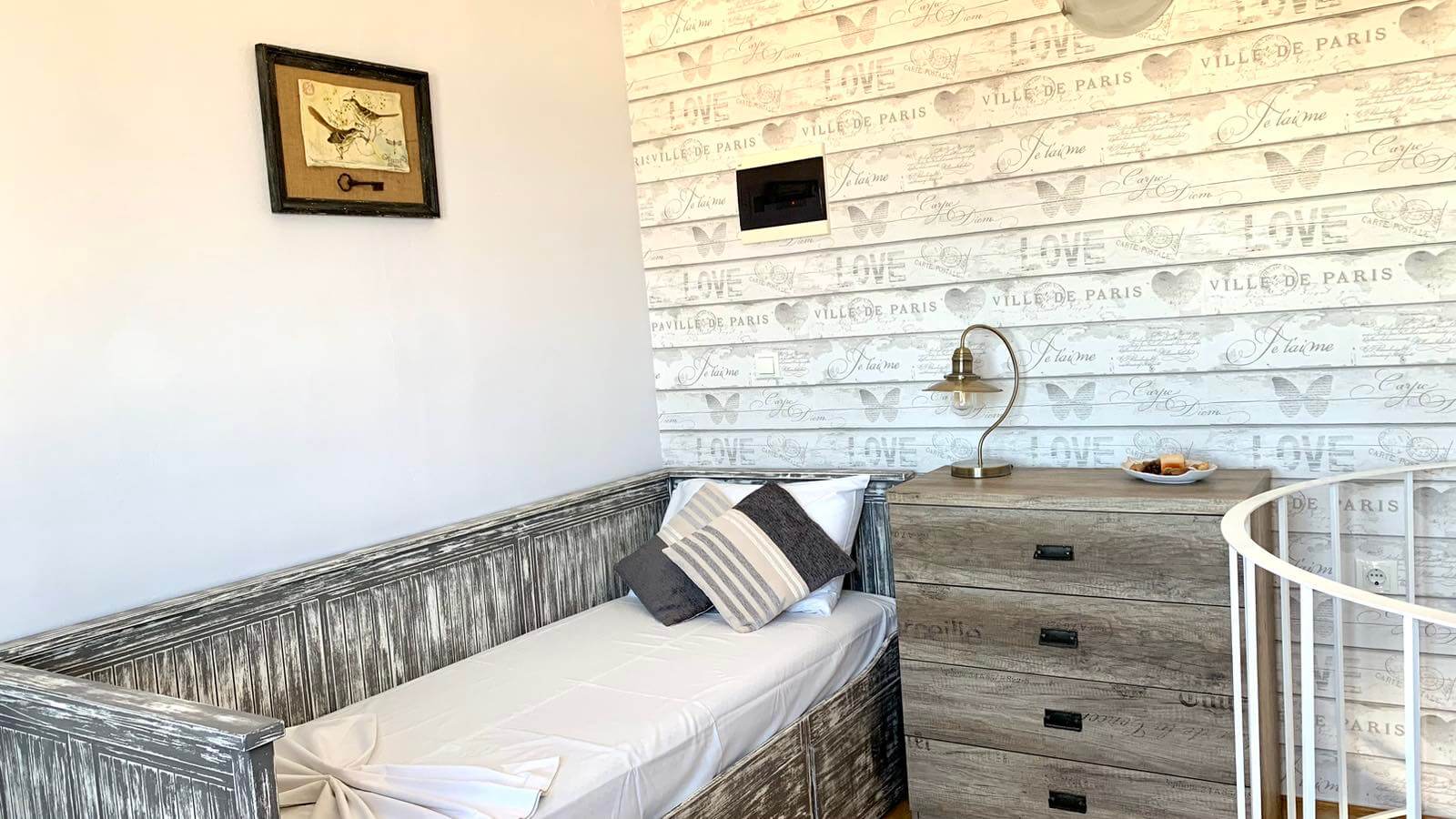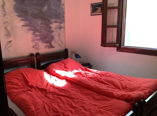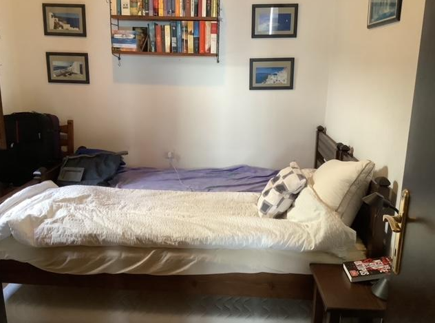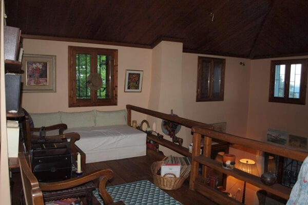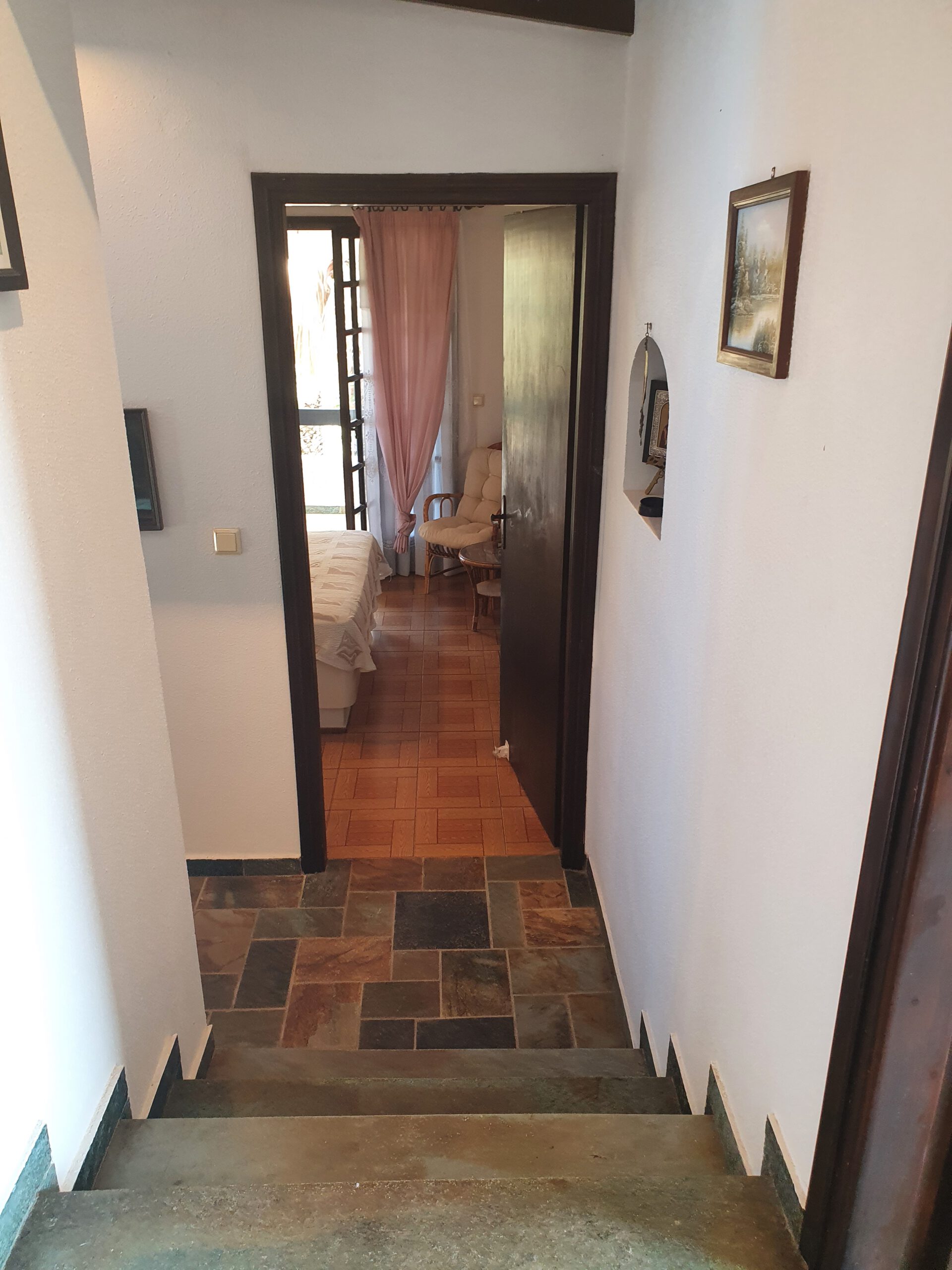המדרגות מובילות למפלס השלישי, עליית הגג, שהוסבה לחדר שינה גדול עם שתי מיטות יחיד.