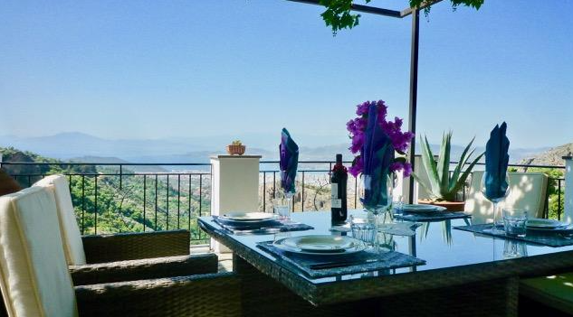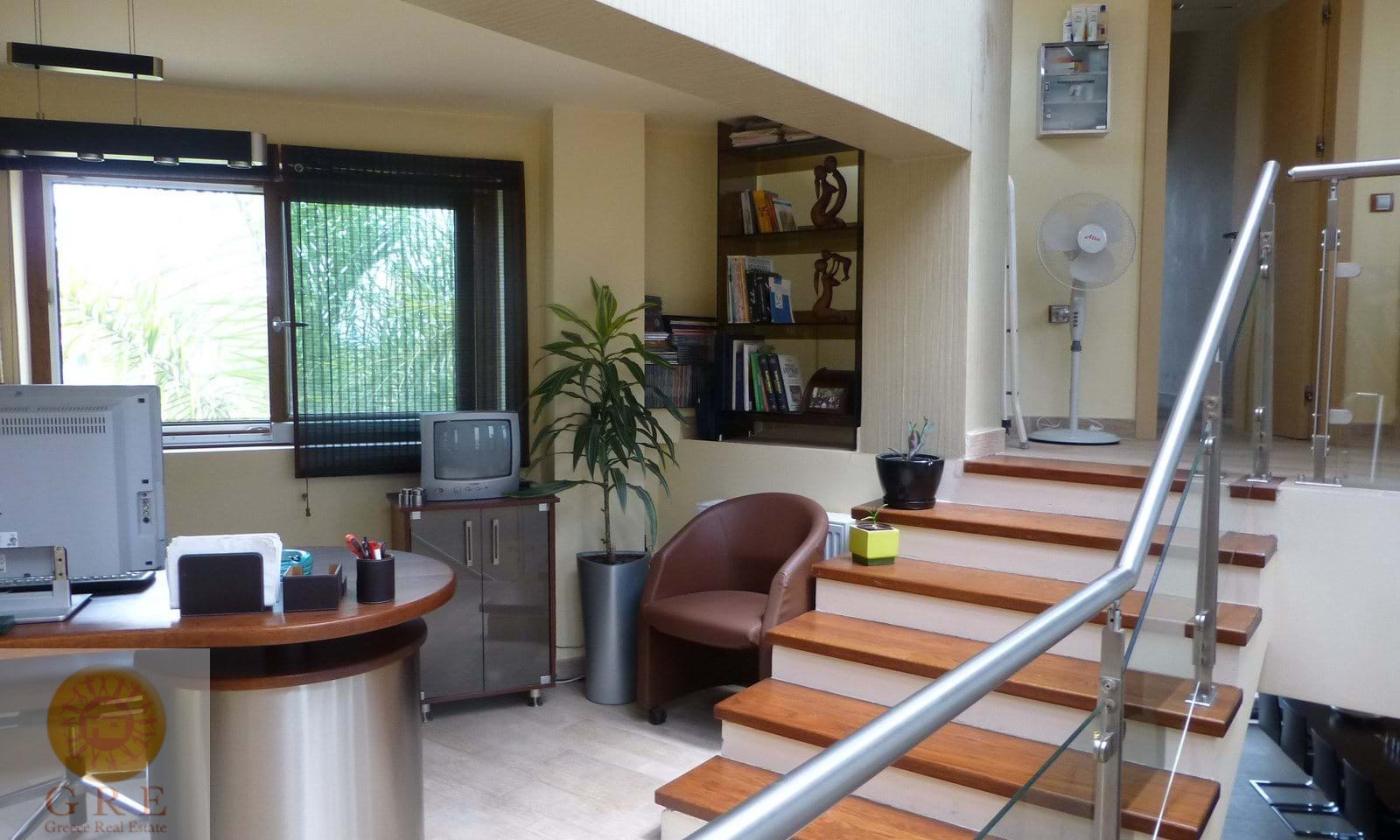 בעקבות מדרגות העץ לקומה הראשונה נגיע לפינת עבודה מקסימה המשקיפה על אזור הבריכה ועם גישה למרפסת הגדולה עם נוף פנורמי של ההרים.