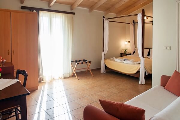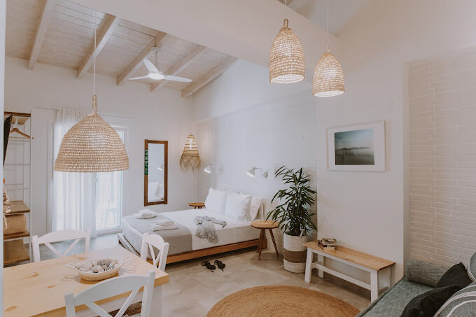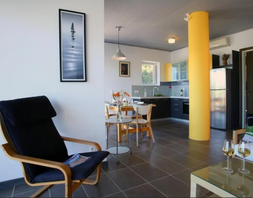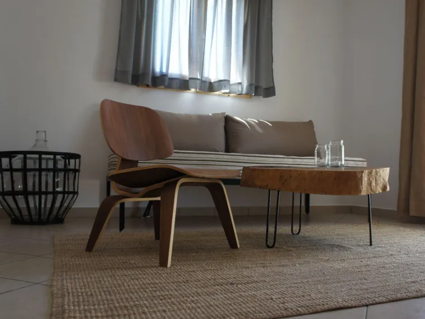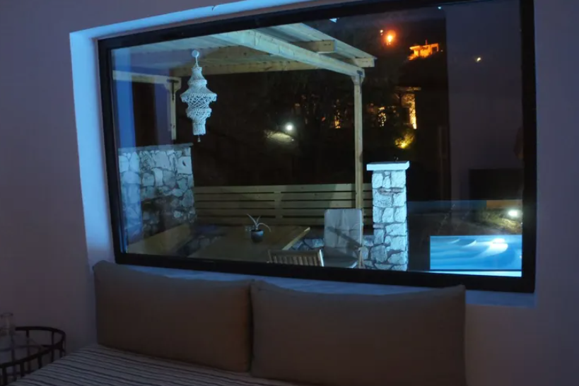 עץ ואבן הם המאפיינים הדומיננטיים התואמים באופן מושלם את הנוף המרשים של מטעי זיתים המקיפים את הווילה.