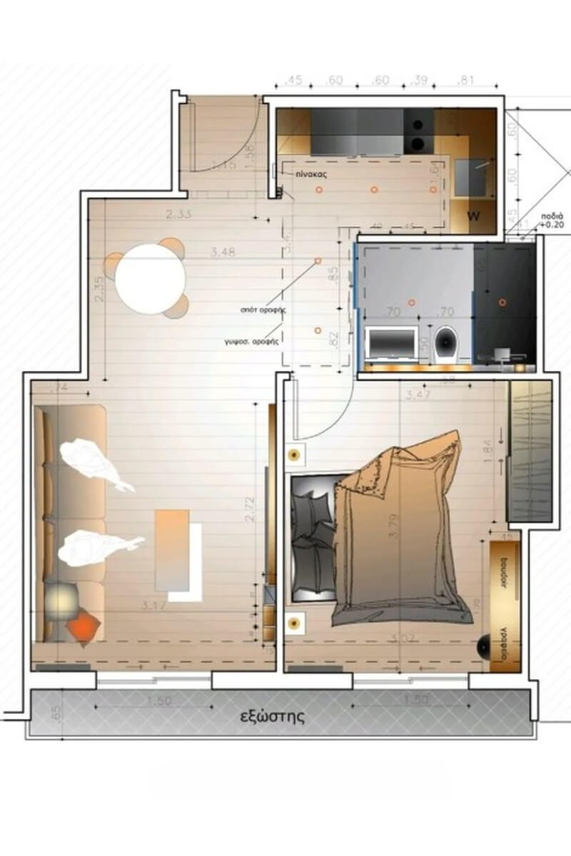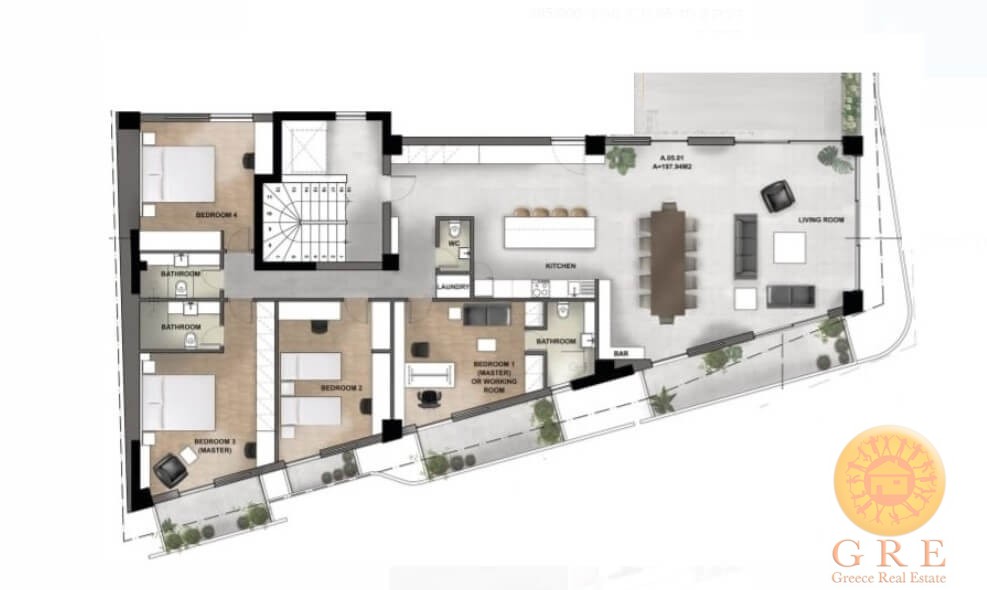 באותה קומה יש גם חדר שינה עם מיטה זוגית, ארון בגדים מובנה ומרפסת גדולה משלו, כמו גם חדר רחצה עם תא מקלחת.