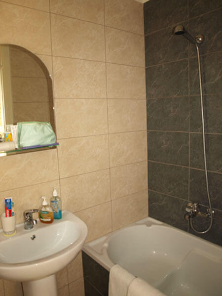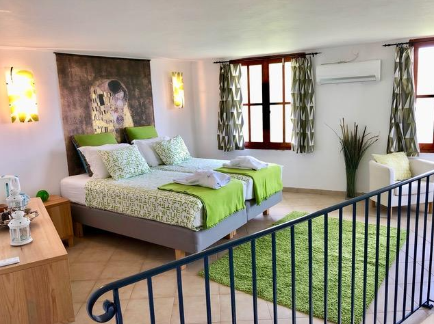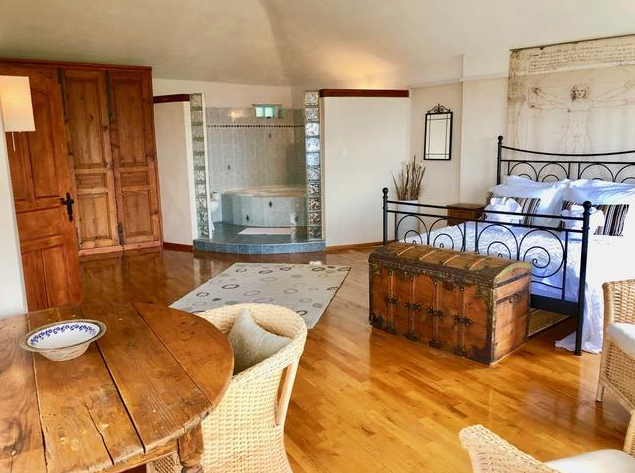 יש גם חדר רחצה עם מקלחת, חדר שינה עם מיטה זוגית וארון בגדים, הכולל מרפסת קטנה המשקיפה על אזור הבריכה ומרפסת מרווחת משלה המשקיפה על המרחבים הירוקים העצומים.