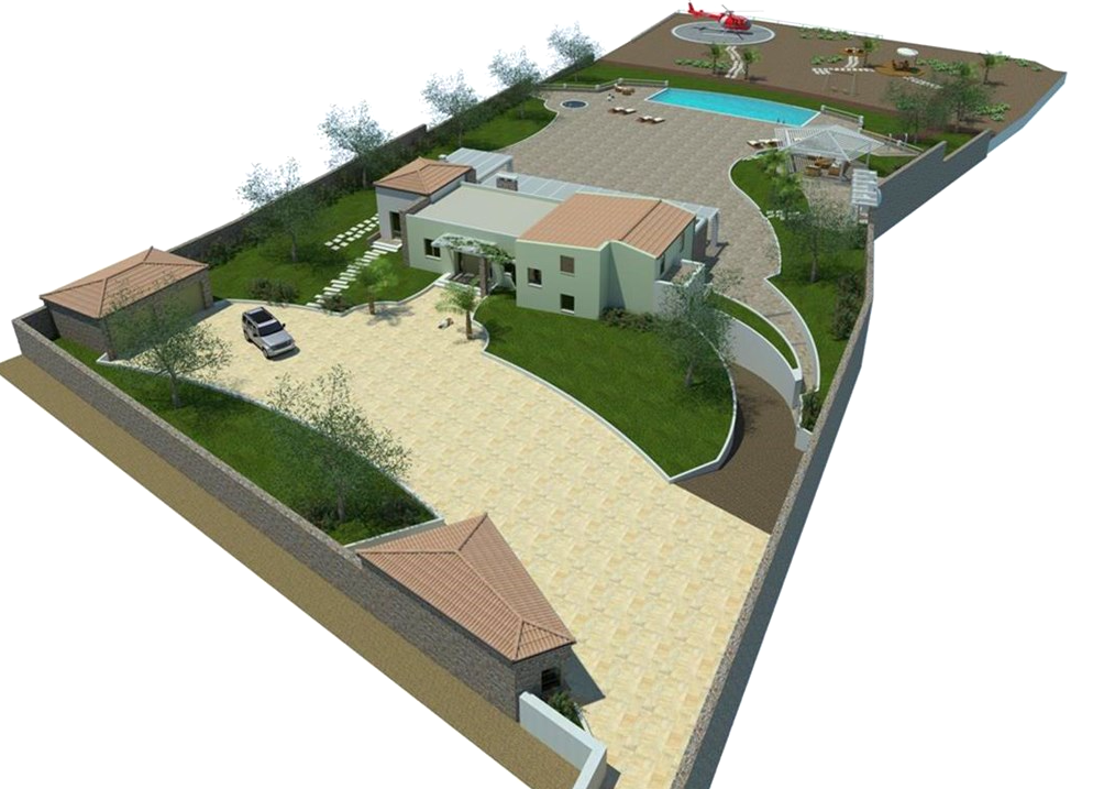 הנכס מורכב מהווילה בשטח 174 מ"ר על מגרש של 850 מ"ר ועוד שלושה בתים ישנים של 320 מ"ר בסך הכל, על 450 מ"ר נוספים, ובכך מודדים שטח קרקע כולל של 1300 מ"ר לכל המתחם.