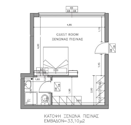 בריכת שחייה עם מפל 36 מ"ר, ג'קוזי ושטח גדול מסביב עם דק מסוג עץ. מטבח קטן וחדר רחצה נבנו בכיכר הבריכה כדי לשרת את צורכי המבקרים בבריכה.