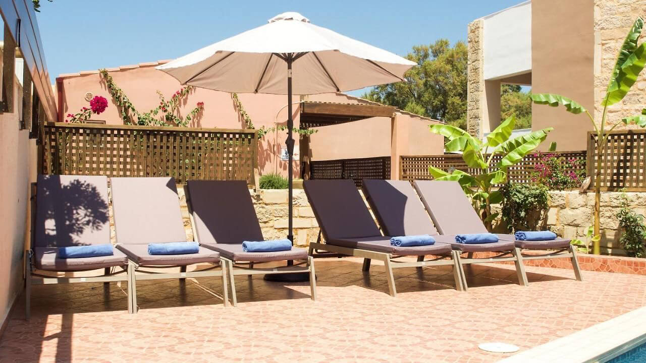 הבריכה הפרטית מציעה רגעי קירור בימי הקיץ החמים, בעוד שבמרפסת הבריכה יש די והותר מקום לשיזוף, למי שמחפש פרטיות מוחלטת בעת מנוחה תחת השמש של כרתים.
