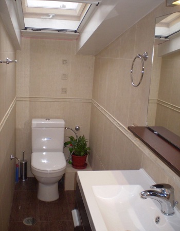 בקומה למעלה יש 2 חדרי שינה וחדר מקלחת, באחד מחדרי השינה יש מרפסת גדולה, שממנה נשקף נוף לים.