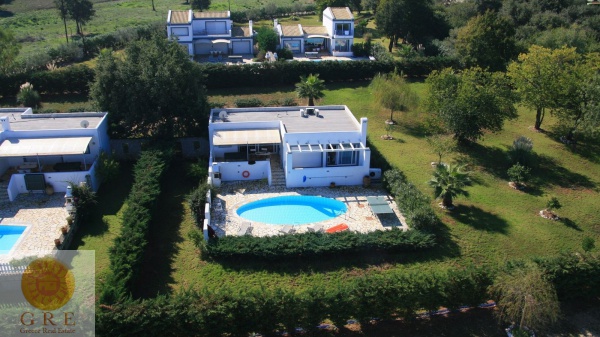 אחד מקבוצת בתים, עם גנים מעוצבים וגדר חיה כדי להבטיח פרטיות לכל וילה.