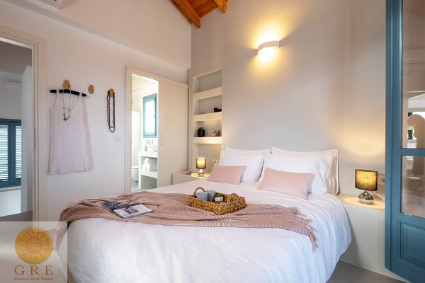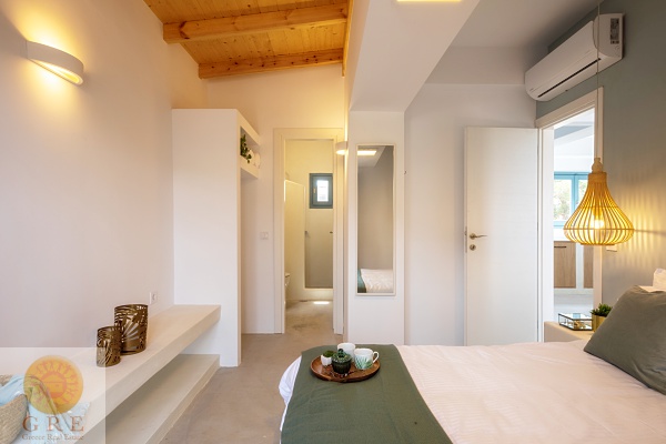 - חדר שינה זוגי עם עם דלת לחדר שירותים ומקלחת ומרפסת פרטית הפונה לבריכה עם נוף מדהים.