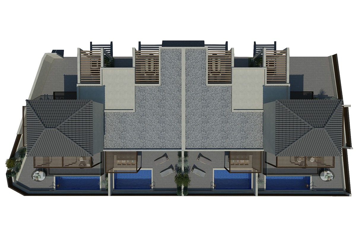 * כל יחידה עם בריכת שחייה פרטית משלה ואזור חניה למכונית אחת