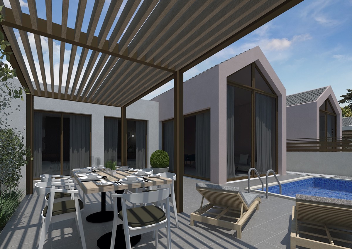 לכל נכס יש בריכת שחייה פרטית משלו ומקום חניה ואין אזורי שימוש משותפים בפיתוח שכן כל וילה עצמאית לחלוטין.