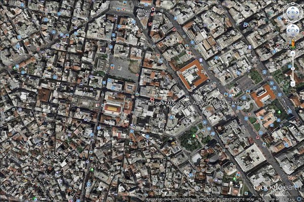 נמצא במרכז אתונה ליד אזור אמוניה היוקרתי מול הוול סטריט באתונה.