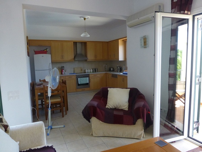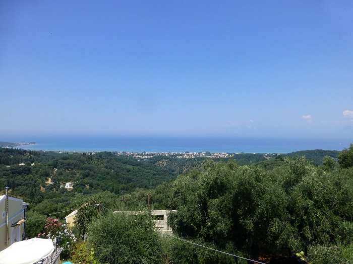Top floor: a bright room with a fireplace and patio doors leading to a small balcony with extensive sea views, and to the famous monastery in Paleokastritsa.