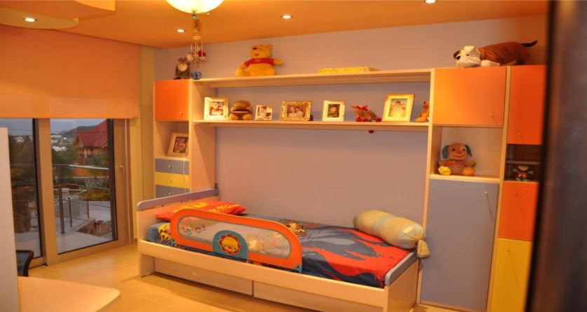 3 Floors villa with 4 bedrooms, 4 bathrooms, 2 kitchens and a living room with a built-in fireplace.