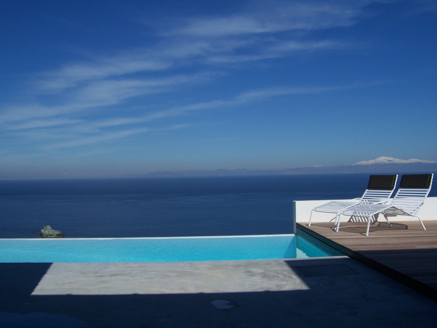 The villa has a view of the sea and the mountains, with a private swimming pool and playground.